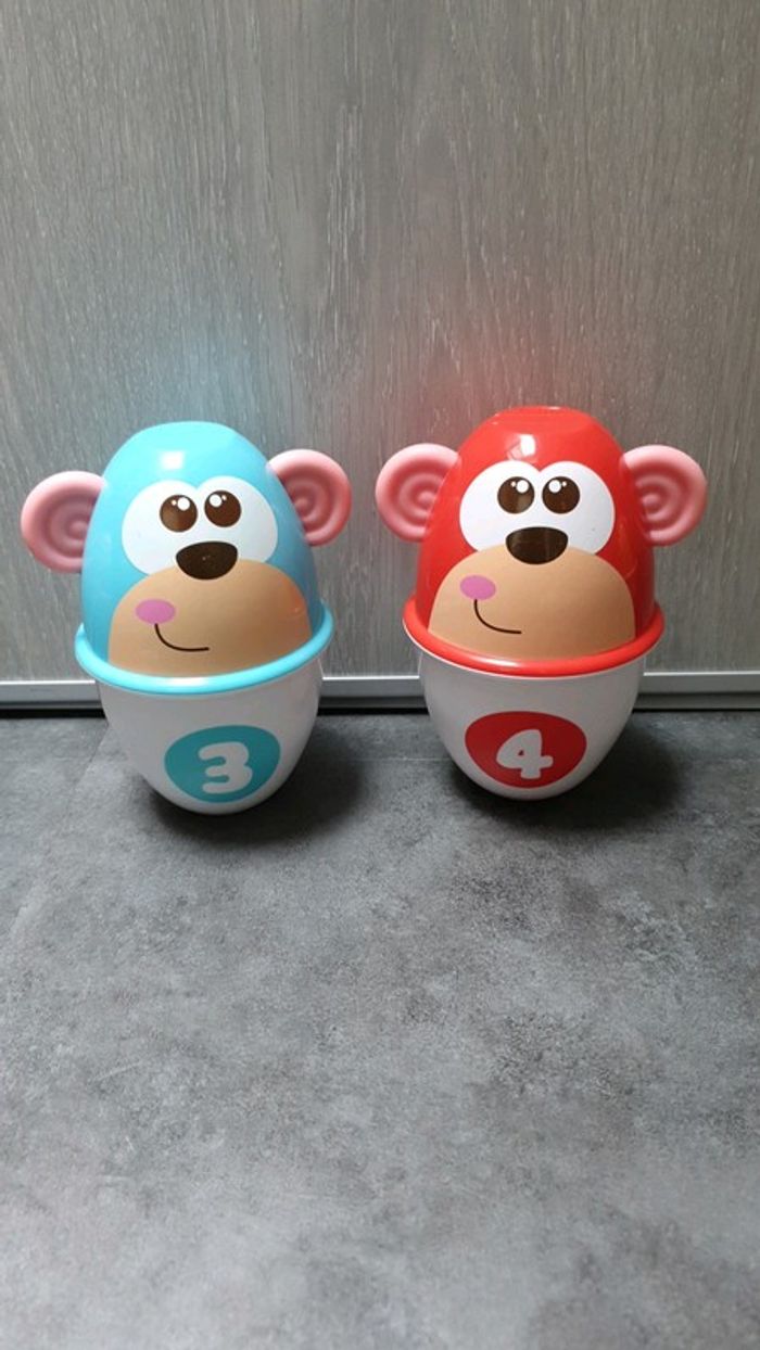 Bowling de la jungle Très bon état, je me demande même si mon fils a joué avec! Marque Chicco Le bowling de la jungle de Chicco,est un jeu de bowling amusant pour faire des strikes ou construire un chamboulle tout de 12 pièces colorées ! Son tout premier jeu de bowling pour s’entraîner à faire des strikes en renversant les 6 quilles colorées à tête de singes. Chaque quille peut être divisée en deux. Composition du produit : - 12 pièces colorées - une boule de bowling Points forts : - Avec les 12 pièces, l’enfant stimule sa créativité en les empilant les unes sur les autres pour réaliser de multiples constructions - Chaque quille a une couleur différente et est numérotée pour apprendre à votre enfant à compter jusqu’à 6 - La boule fournie avec le jeu est composée d’un matériau souple qui permet une utilisation en intérieur - Stimule la coordination oeil-main et améliore la précision des mouvements
