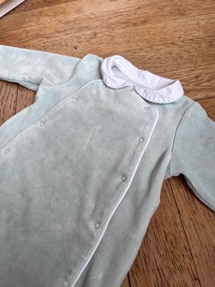 Pyjama vert eau velours col Claudine pressions avant Bout’Chou Monoprix 9 mois - photo numéro 2