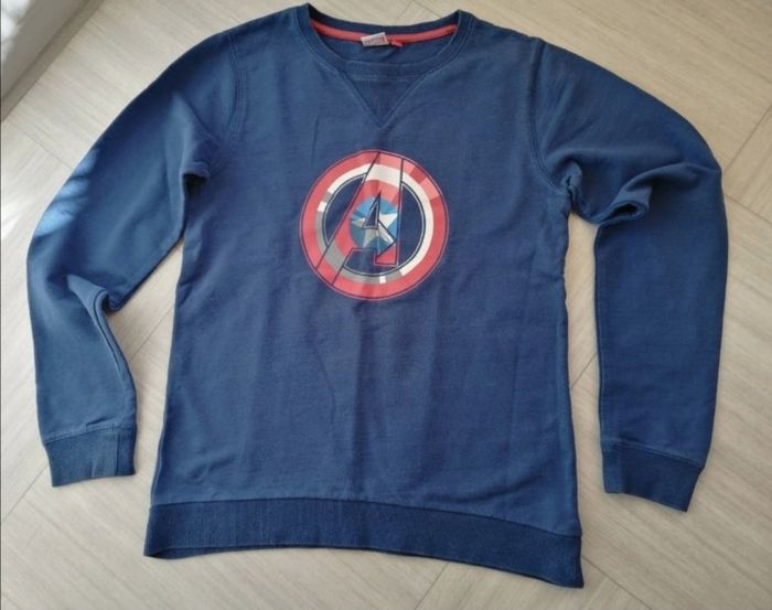 Pull Avengers, couleur bleu. Taille 13/14 ans. Très bon état hors mis un micro trou dans la manche (voir photo)