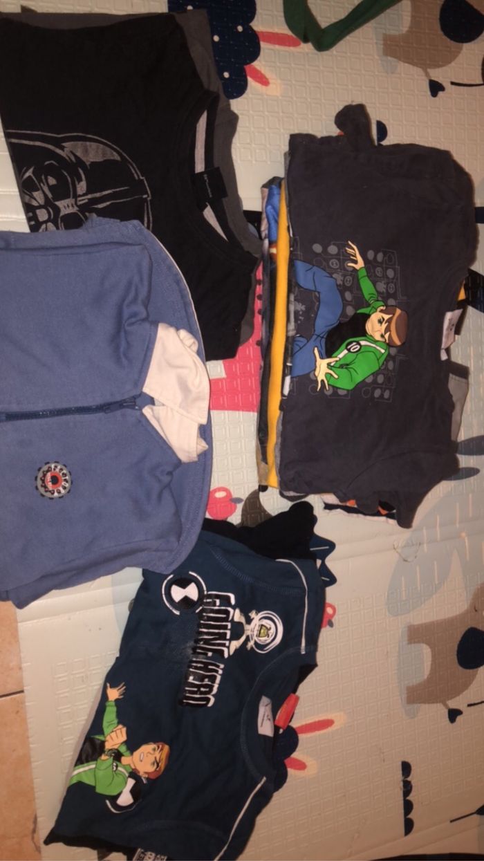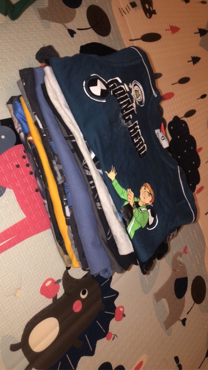 Bonjour vend lot de 18 tee shirt manche longue 7€ le lots 5-6ans très bon état il y’a dû star wars Mickey dinosaure ben10 et dès chose plus simple