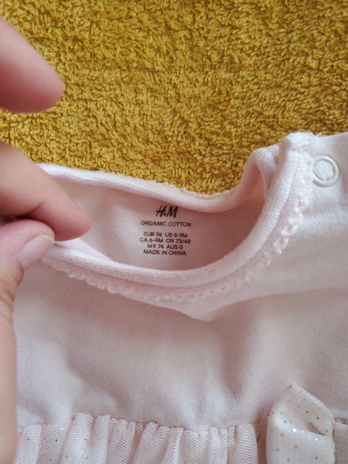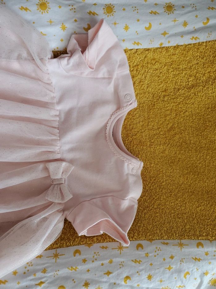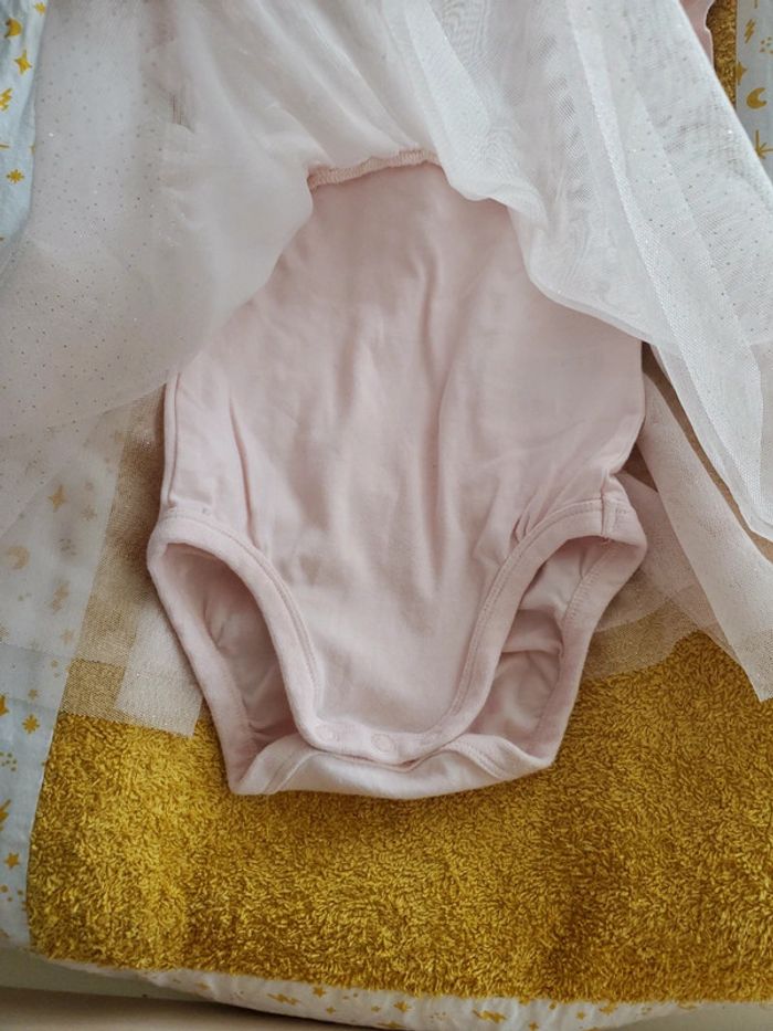 Robe body rose H&M taille 6/9 mois avec voile et nœuds brillant