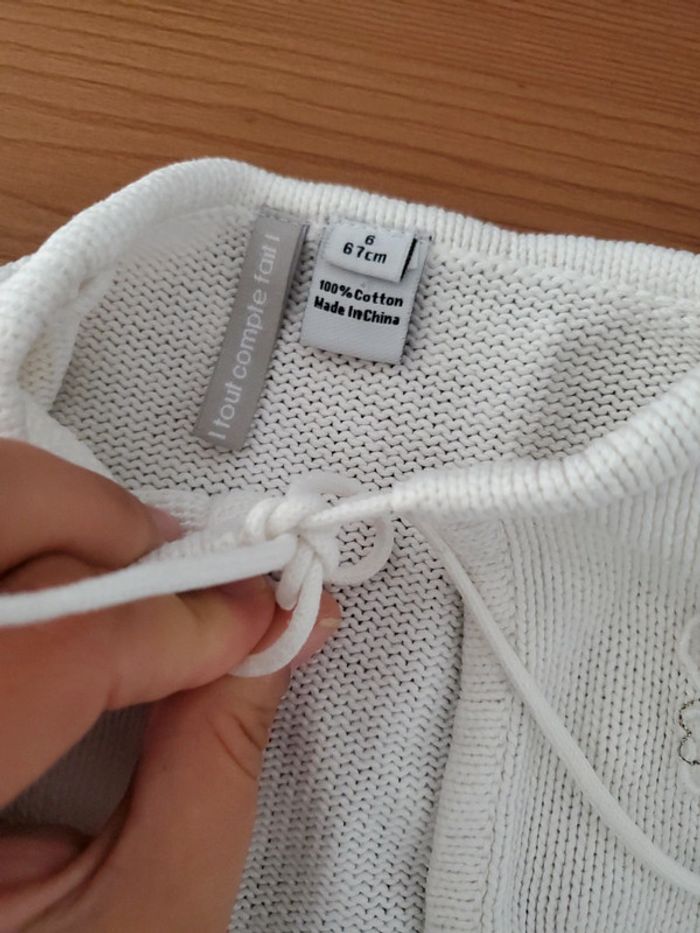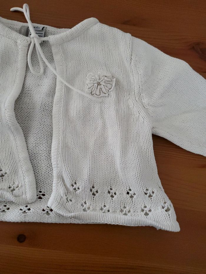 Veste blanche en coton détails fleurs et broderie taille 6 mois de la marque tout compte fait