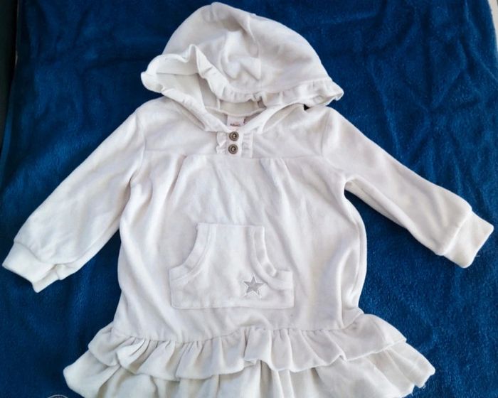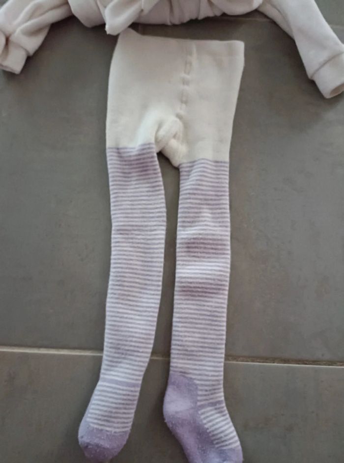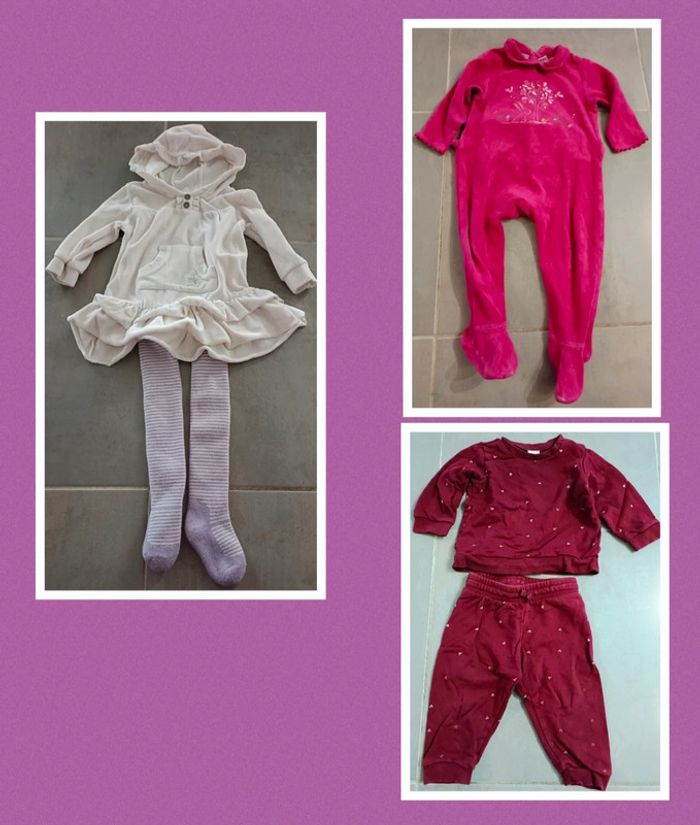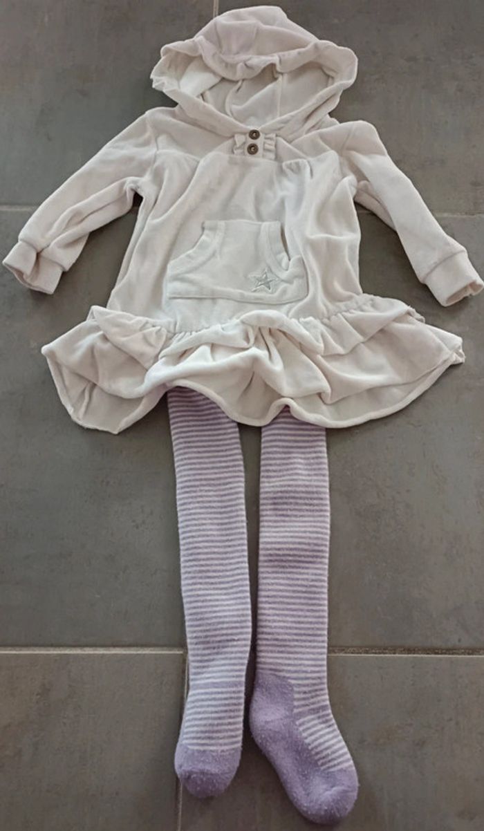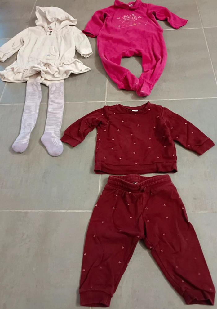 80 cm Lot indissociable - 1 robe blanche achetée lors d'un voyage en Suisse+ collant chaud - ensemble pantalon et sweat - 1 pyjama De bon état à très bon état #18moisfillecamilled974