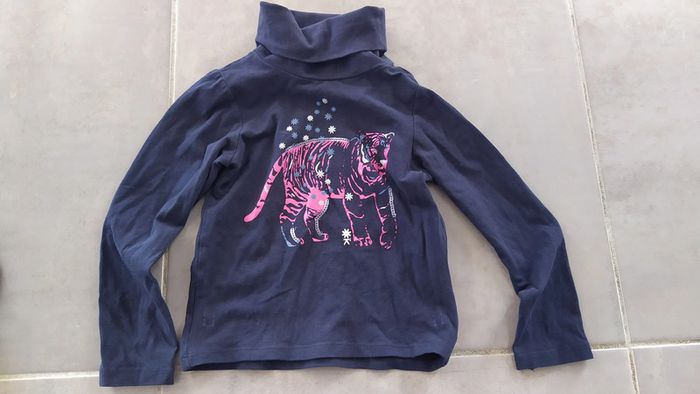 Hauts à manches longues : 1 col roulé bleu marine Okaïdi 102 cm 1haut marron H&M 104 cm Lot indissociable #4ansfillecamilled974