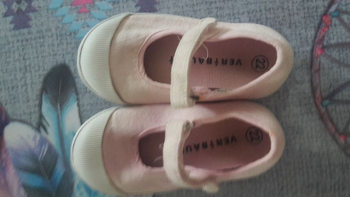 Sandales Vertbaudet roses et blanches. Bride à scratch Pointure 22 N'hésitez pas à vous abonner pour suivre mes ventes. #chaussuresfillecamilled974