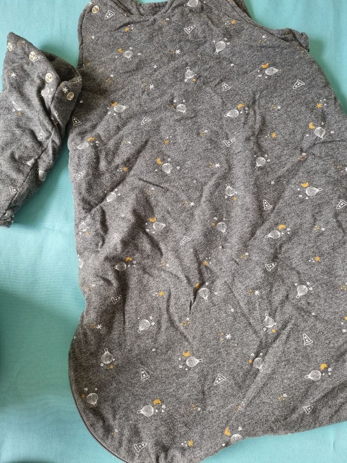 Gigoteuse hiver pour bébé avec dessin de montgolfière, on peut y ajouter des manches