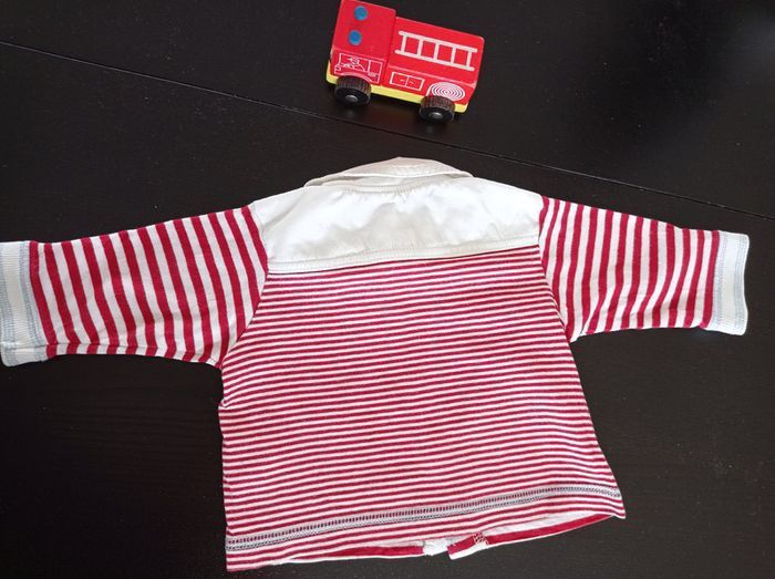 Chemise rayée rouge et blanche bébé 3 mois - photo numéro 2