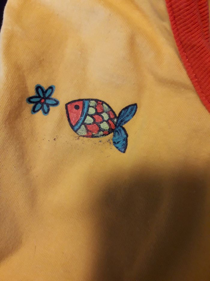 Dessin du poisson un peu abîmé (cf. photo 3). A part ça, le reste est en très bon état. Se fier à la photo 6 pour la couleur. #bébé6mois #fille6mois