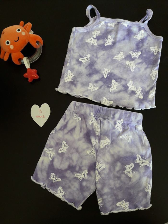 Ensemble violet papillons 3 mois - photo numéro 1