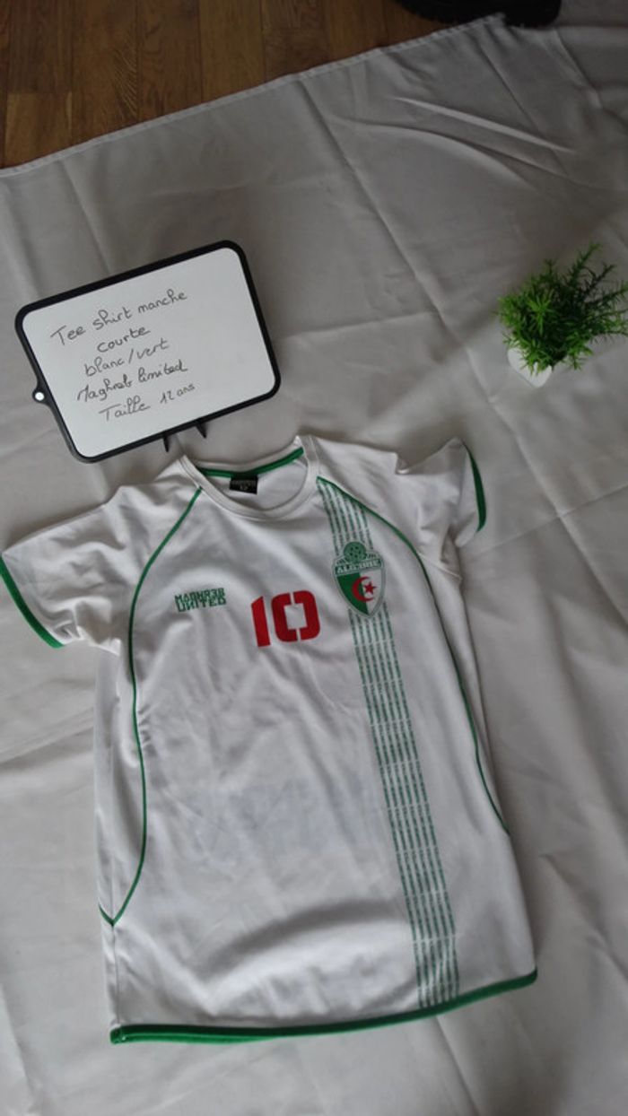 Tee shirt manche courte blanc Maghreb Limited Motif écriture vert et numéro 10 rouge