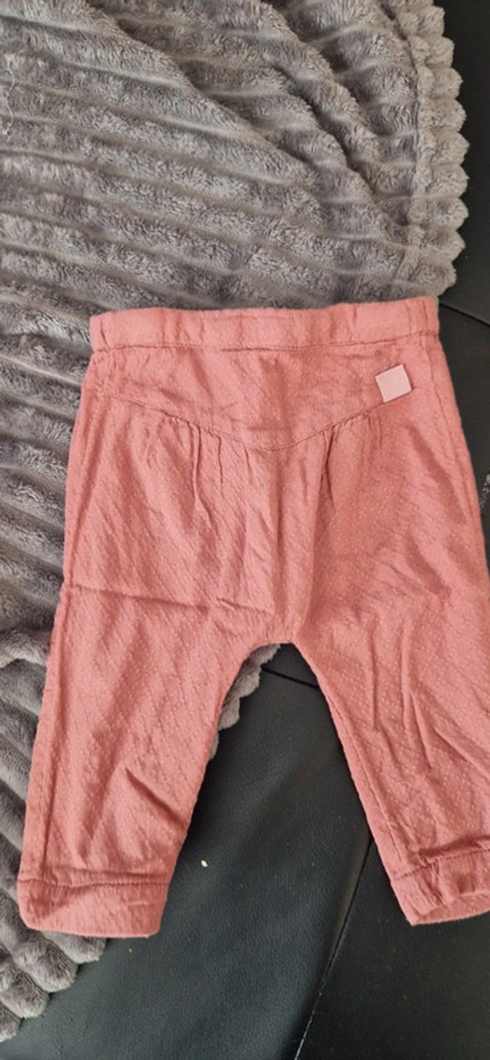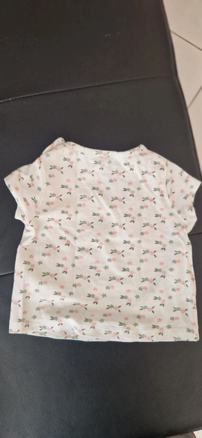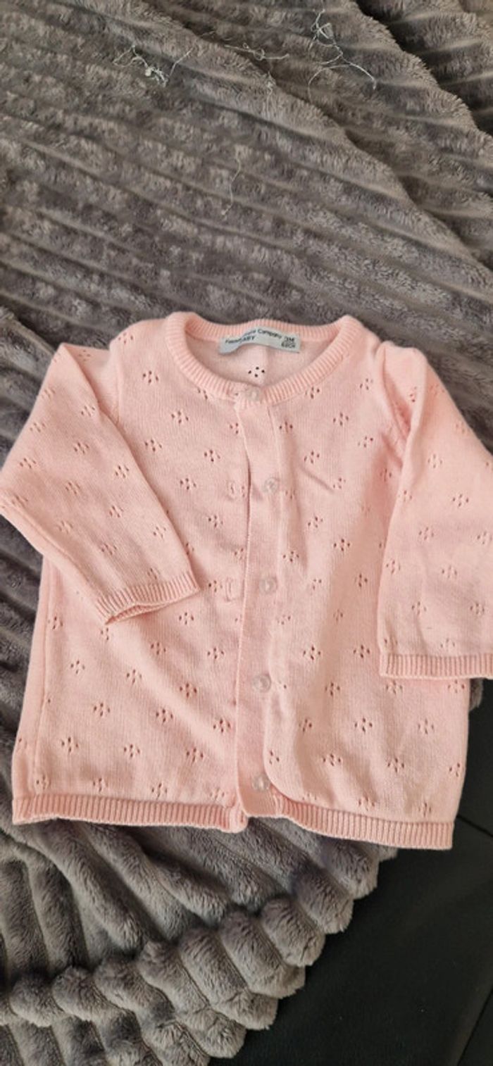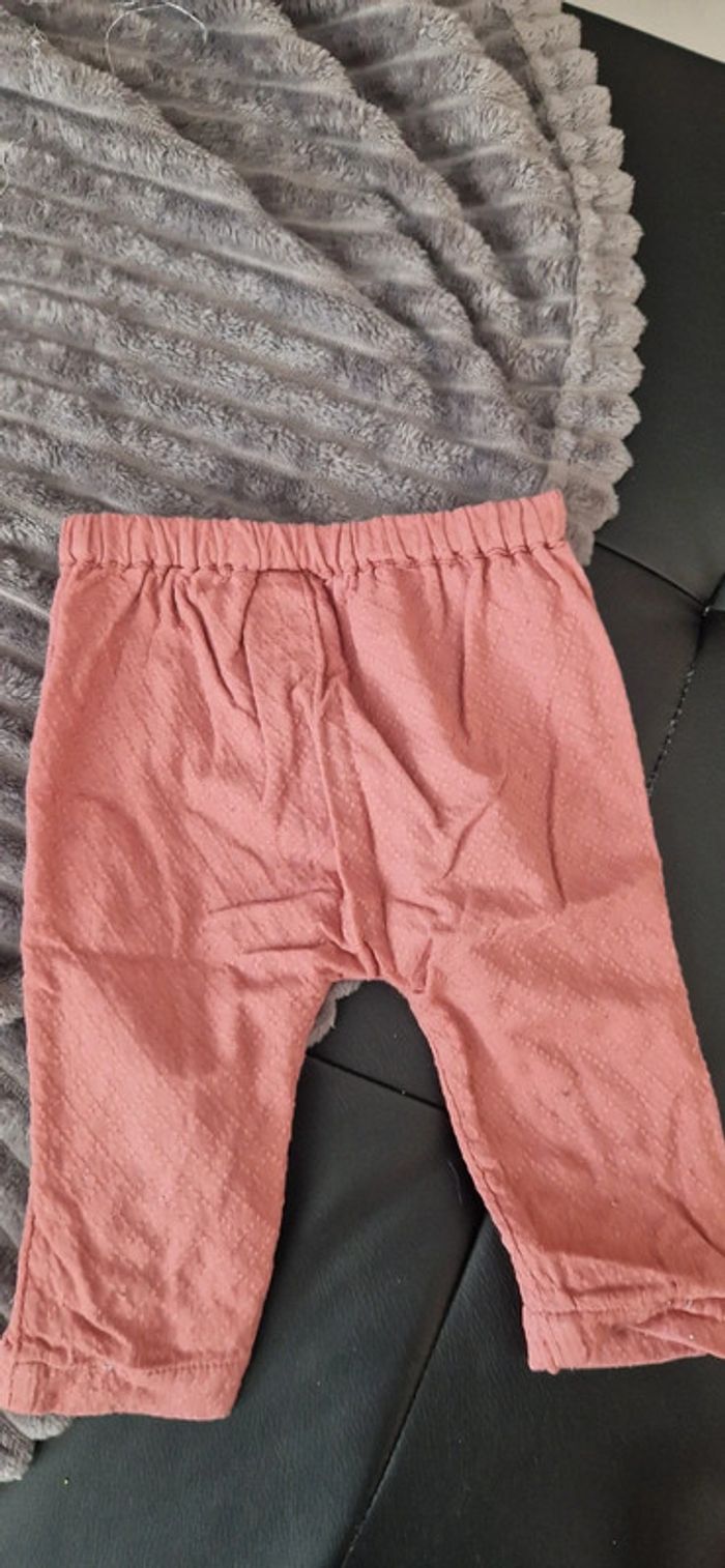 Ensemble gilet rose, t-shirt à fleurs et pantalon de jean. Le pantalon rose est offert car il a un défaut (cf photos) Taille 3 mois