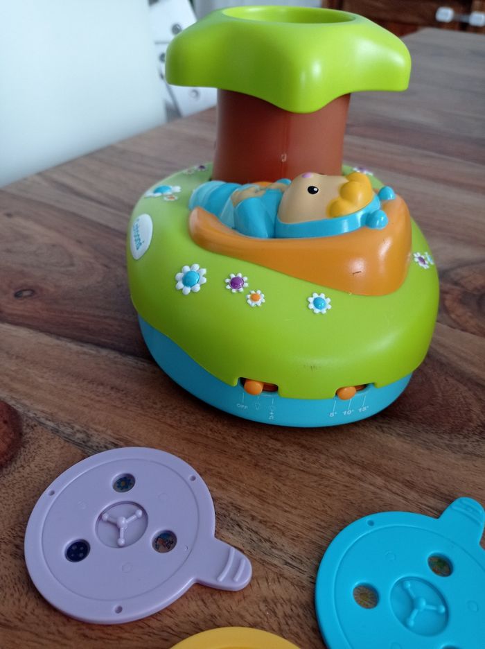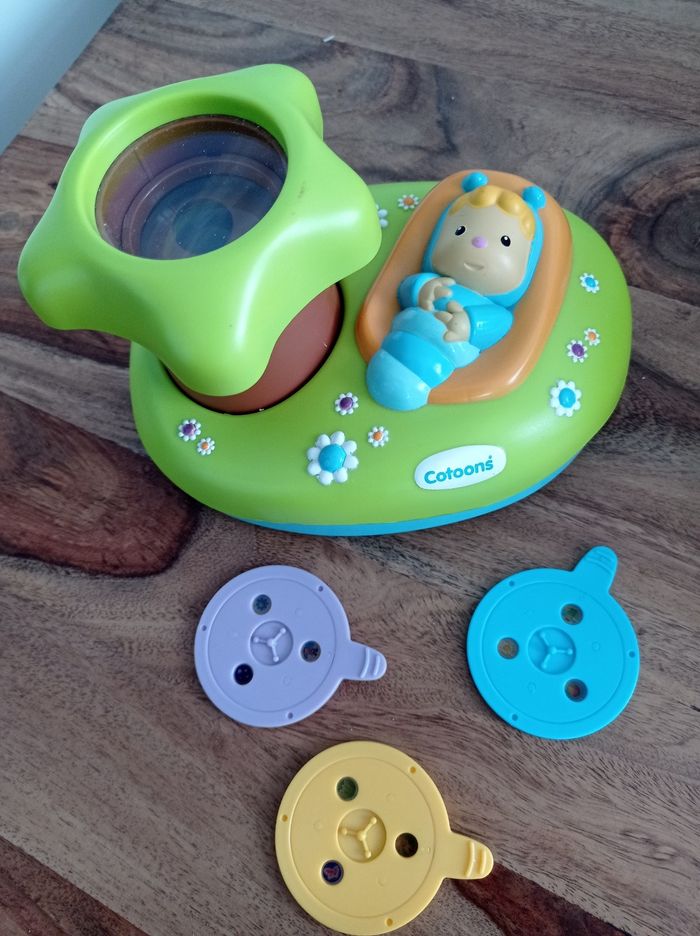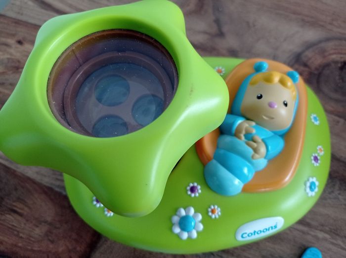 Veilleuse son + lumière. Projette des images au plafond + musique.