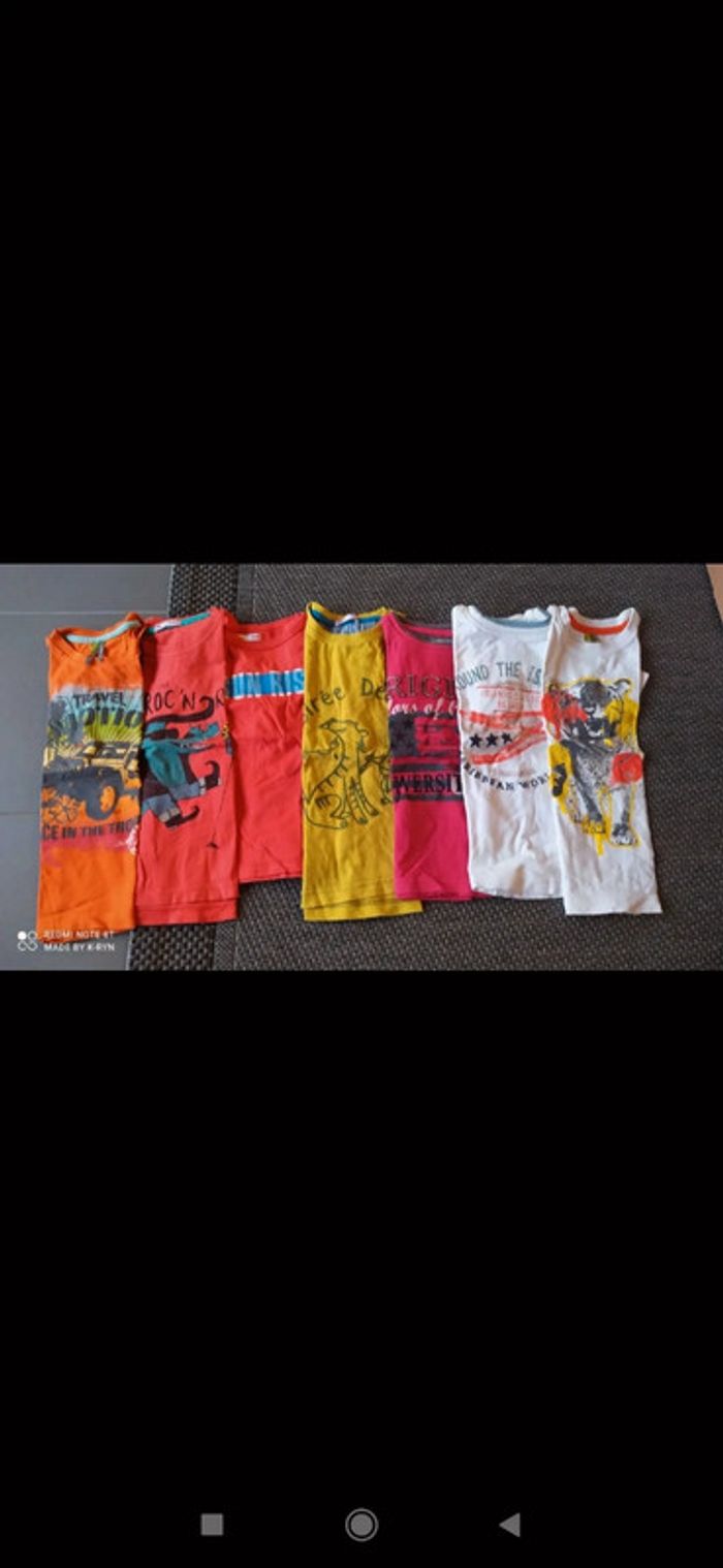15 tee-shirt manches courtes (les 2 sur la dernière photo offerts) dont 1 ensemble sergent major (tee-shirt rayé neuf). 1 chemise neuve Ycc 5 shorts bermudas. D'autres lots disponible, en déstockage complet. #kanoema_4ansG