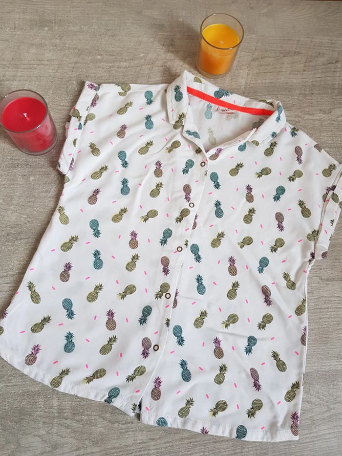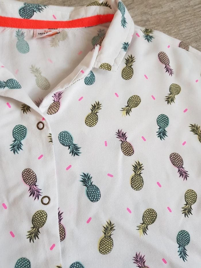 Les trouvailles de Jeanne Chemisier MC Tape à l'oeil en 10 ans. Couleur blanc motifs ananas colorés. #ltdj10ansfille #chemisier10ansfille #chemisierfille10ans