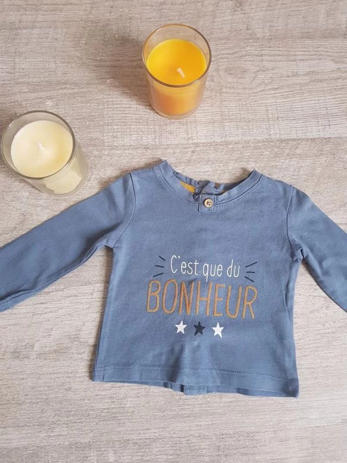 Les trouvailles de Jeanne T-shirt ML Kiabi en 1 mois. Couleur bleu. #ltdj1moisgarcon #tshirtbebegarcon1mois #tshirtgarcon1mois Si vous souhaitez acheter plusieurs articles, n'hésitez pas à m'envoyer un message.