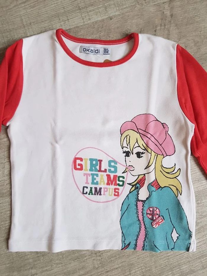 Les trouvailles de Jeanne T-shirt ML Okaïdi en 5 ans. Couleur blanc avec motif enfant. #ltdj5ansfille #tshirtfille5ans Si vous souhaitez acheter plusieurs articles, n'hésitez pas à m'envoyer un message.