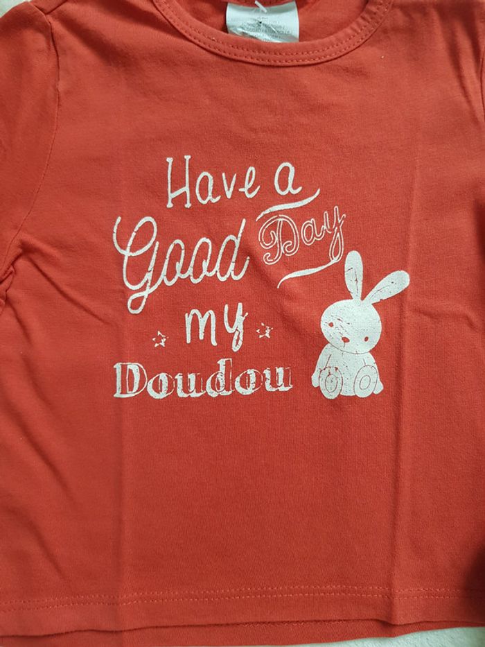Les trouvailles de Jeanne T-shirt ML de chez Kiabi. Couleur orange avec motif lapin. En très bon état. #ltdj6moisgarcon #tshirtgarcon6mois #tshirtbebegarcon6mois