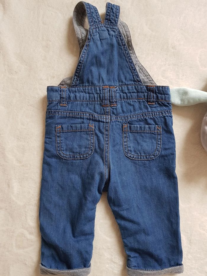 Les trouvailles de Jeanne Salopette en jean doublé Kiabi. En très bon état. Ouverture par boutons pressions à l'entrejambe. #ltdj6moisgarcon #salopettegarcon6mois