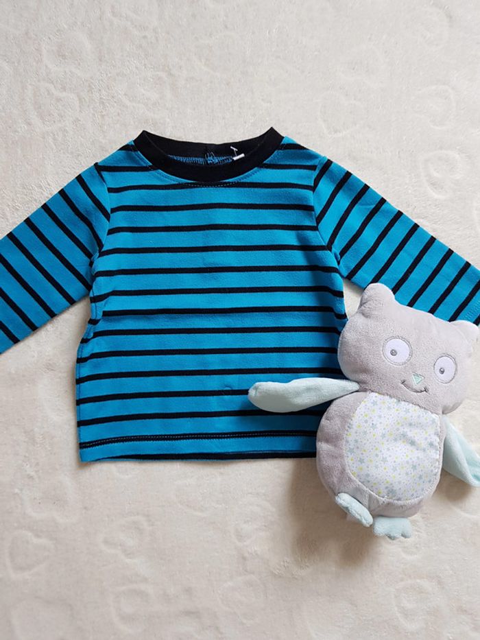Les trouvailles de Jeanne T-shirt ML bleu canard rayé noir. En très bon état. #ltdj6moisgarcon #tshirtgarcon6mois