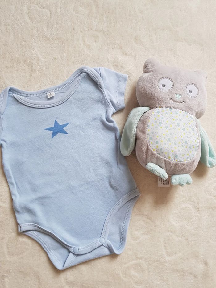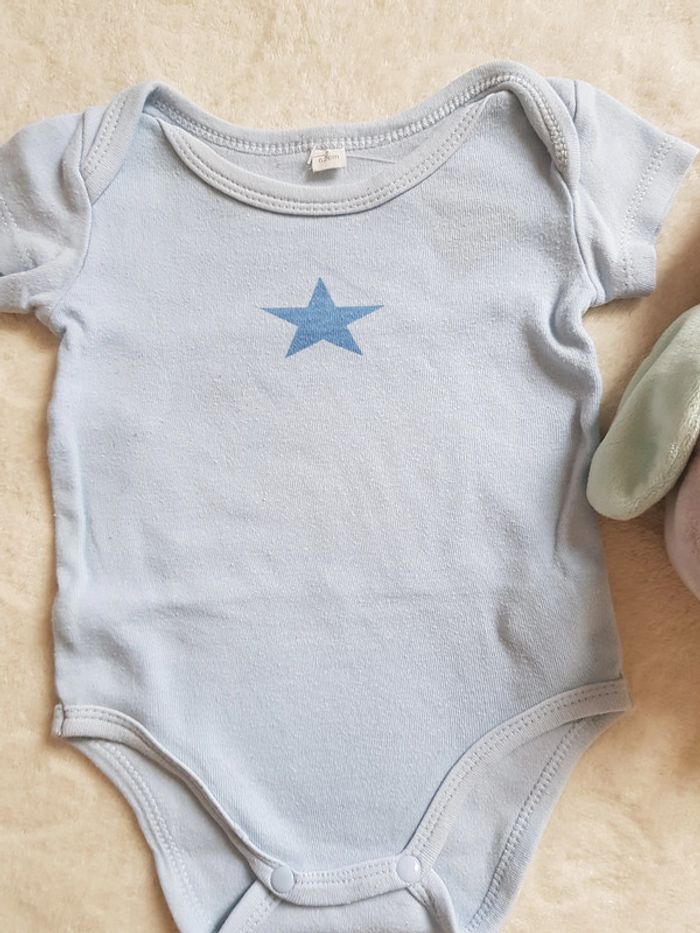 Les trouvailles de Jeanne Body MC de chez In Extenso. Couleur bleu clair avec motif étoile. Très bon état. #ltdj3moisgarcon #body3moisgarcon