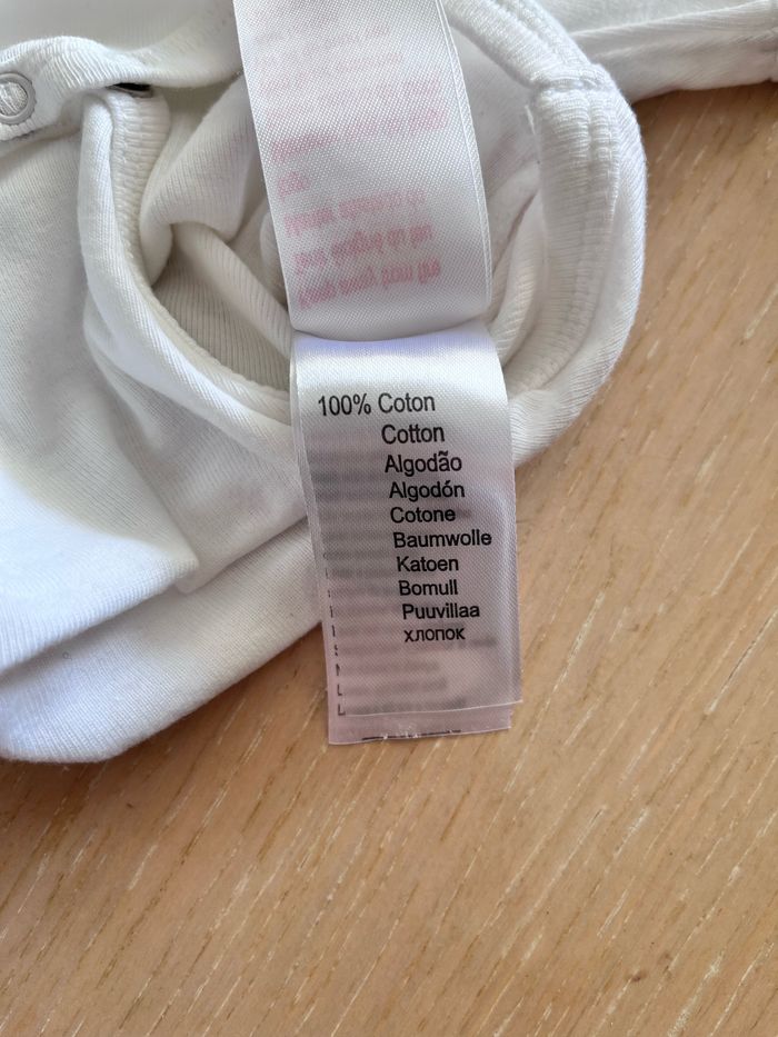 Un des 4 bodies a décoloré au lavage (voir photo : rose très clair au lieu de blanc).