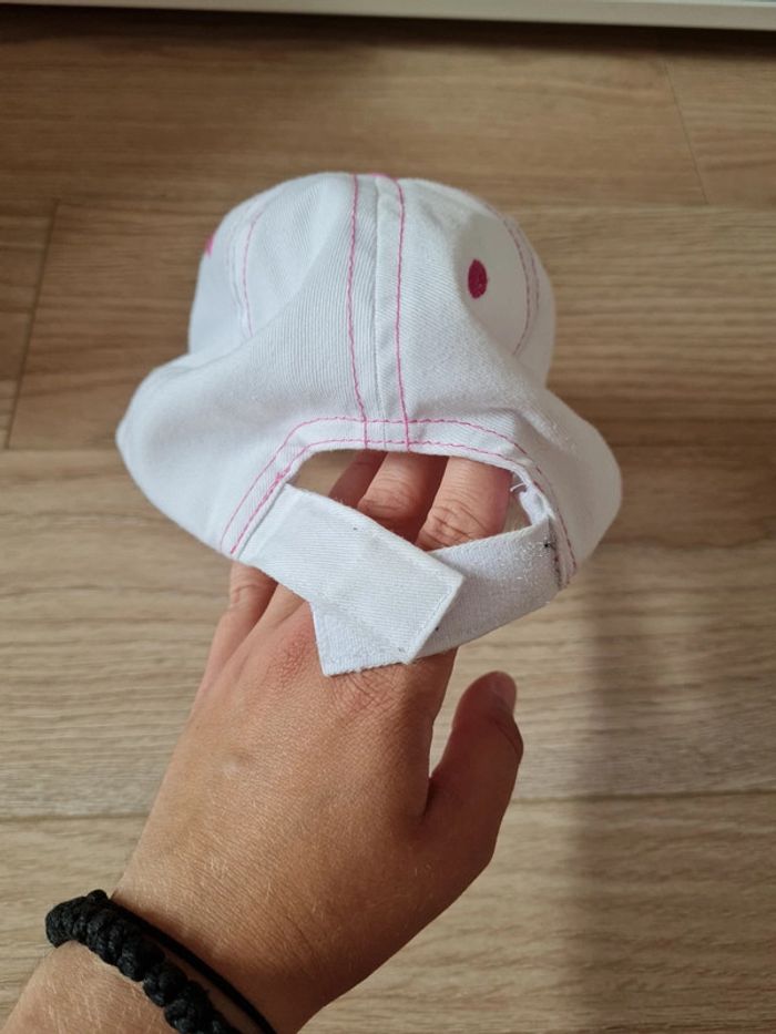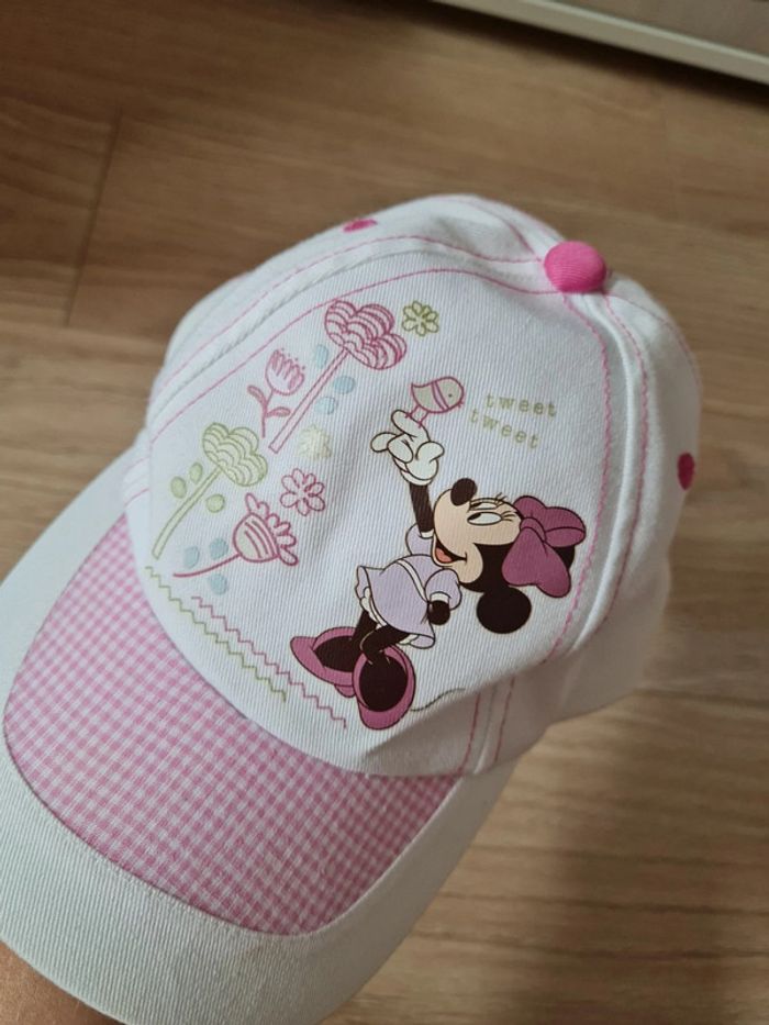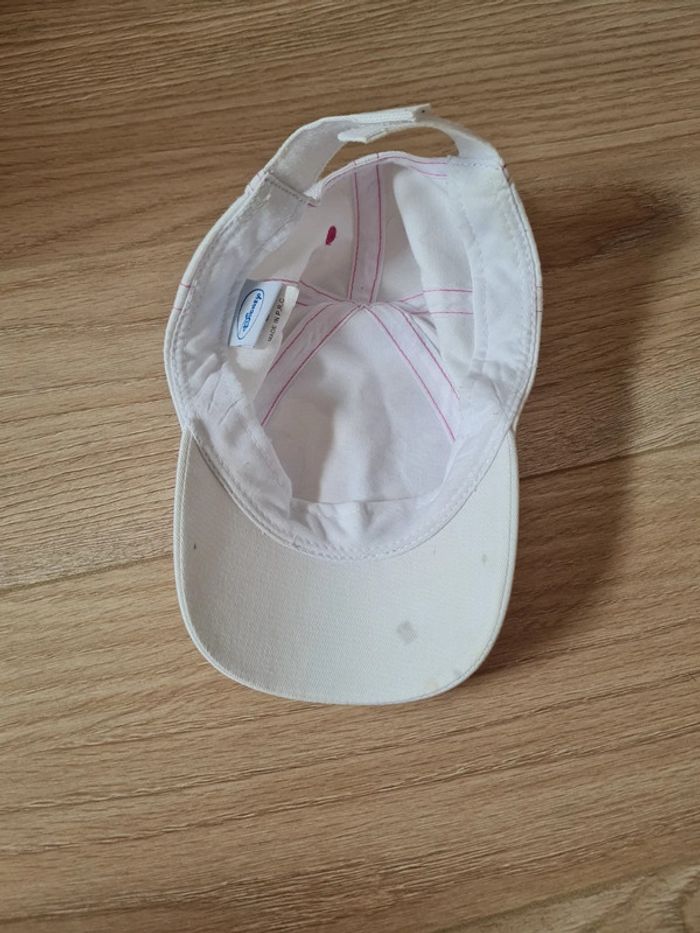 Casquette minnie disney, taille 48, en bon état, la tâche du dessus se voit à peine. Tâchée dessous également. Propre. Maison non fumeur.
