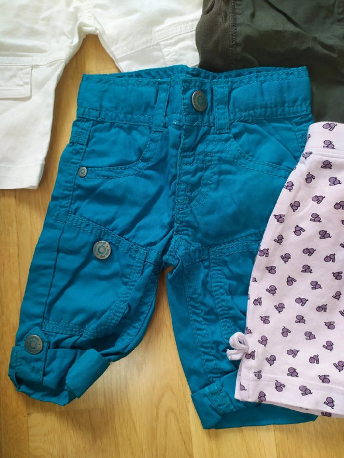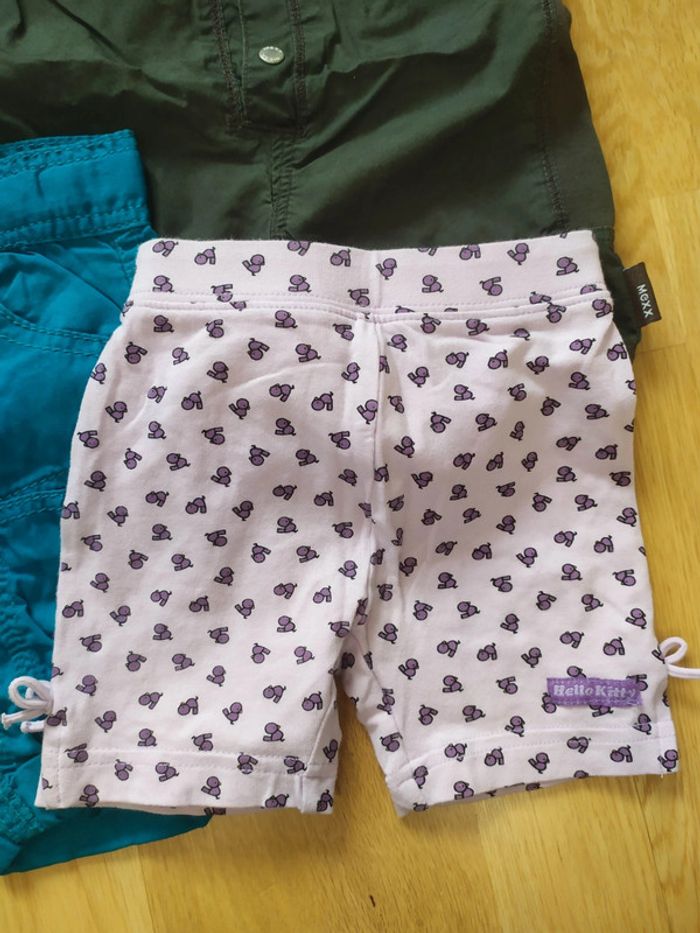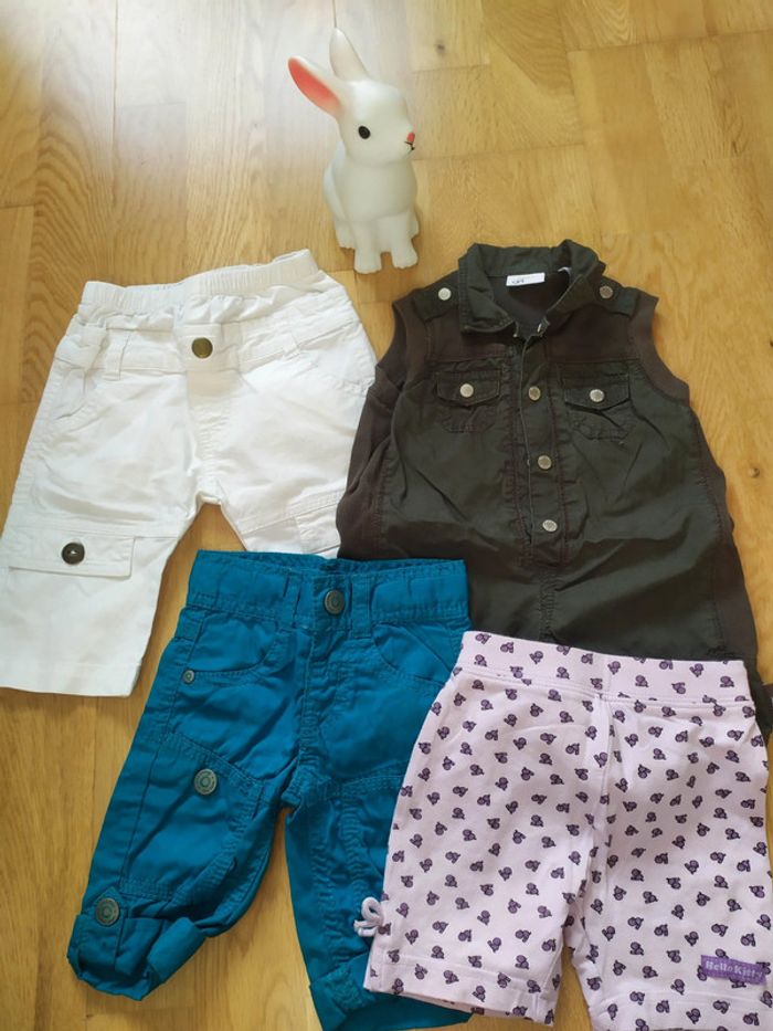 4 articles 1 short hello kitty h&m violet/mauve 1 combinaison kaki mexx 1 pantalon turquoise tape à l'oeil 1 pantalon blanc Lili gaufrette Tout en très bon état #3moisfillevaloeuf