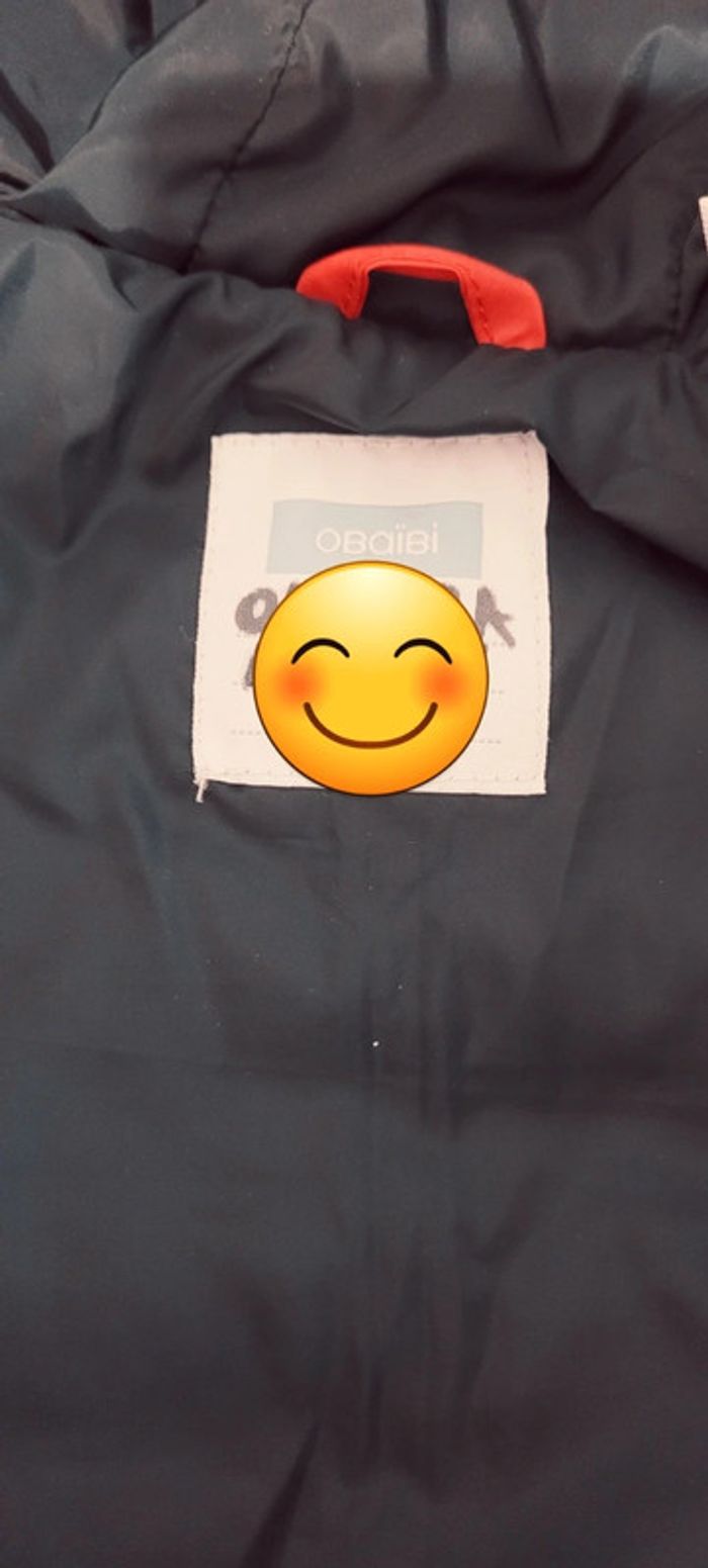 Doudoune imperméable obaïbi taille 23 mois en très bon état. Le nom de mon fils est marqué sur l'étiquette mais une étiquette autocollante au nom de votre enfant couvrira tout ça 😊.