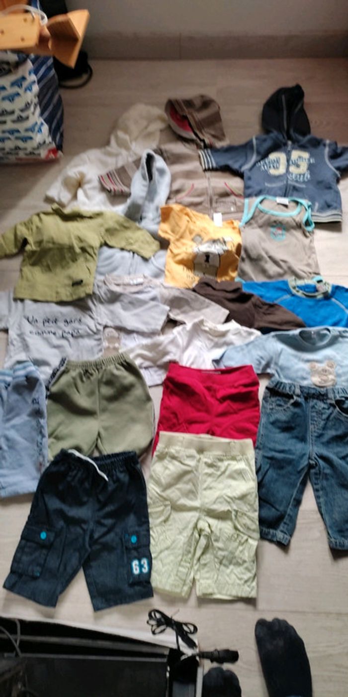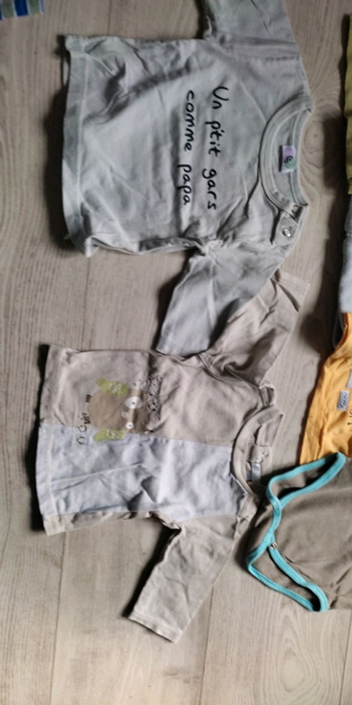 Très bon état général.4 veste/gilets,1body,1tee short manche longue,5tee short manche longue ,2dous pulls, 6pantalons.marques l enfant do,Kiabi,influx,CA,obaibi,cadet Rousselle