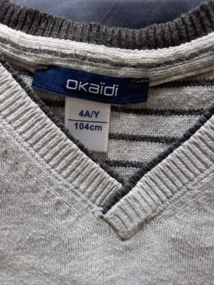 Pull gris col en V en parfait état Marque Okaïdi Pull fin #mathilde882g4ans