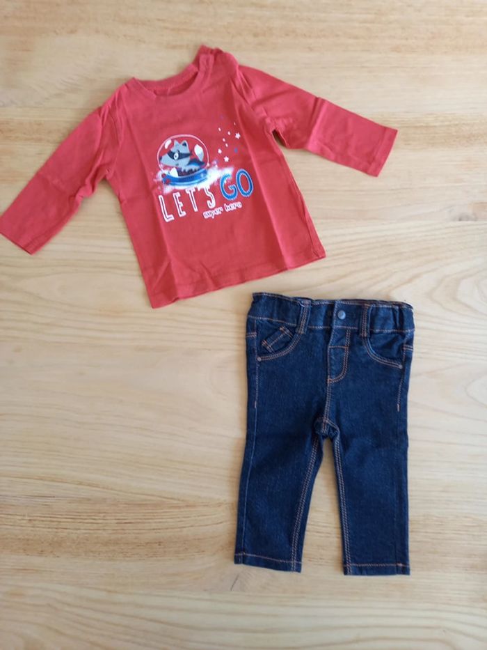 Ensemble en excellent état Jean slim bleu foncé kiabi taille 6 mois T-shirt manches longues rouge à motifs pat et ripaton taille 6 mois #mathilde882g6mois