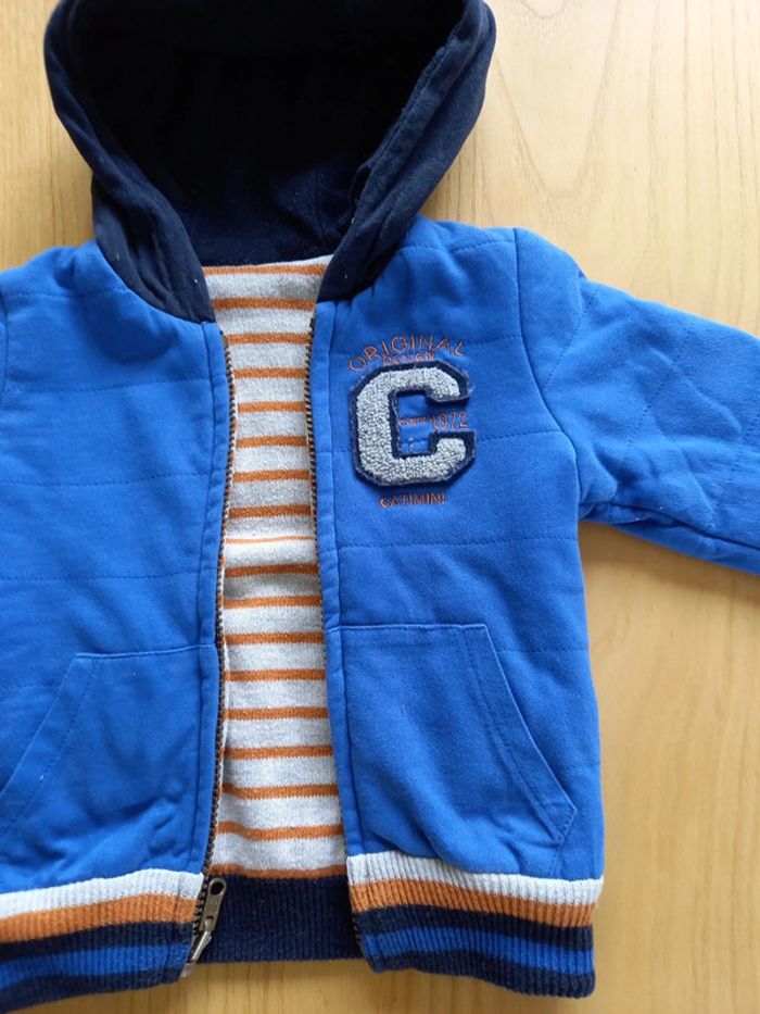Gilet à capuche zipé épais bi matière réversible Peut faire office de veste à la mi saison En très bon état #mathilde882g24mois #giletcatiminigarcon24mois #Catimini24mois