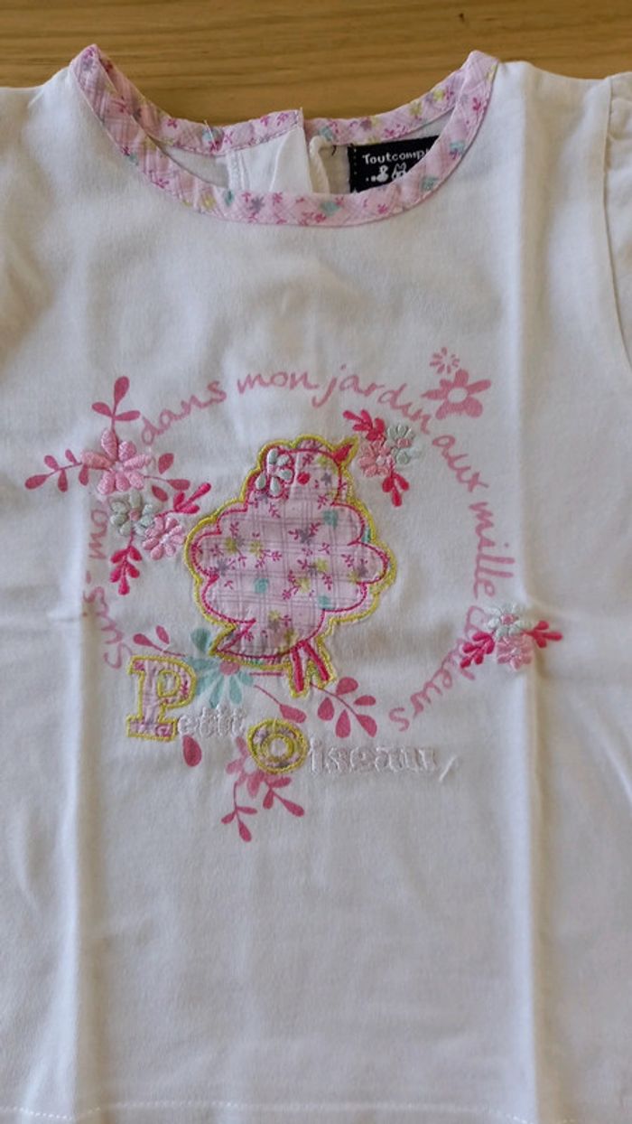 Tshirt blanc broderie fleurs 🌸 en excellent état Taille 12 mois #mathilde88212mois #toutcomptefait #12moisetefille