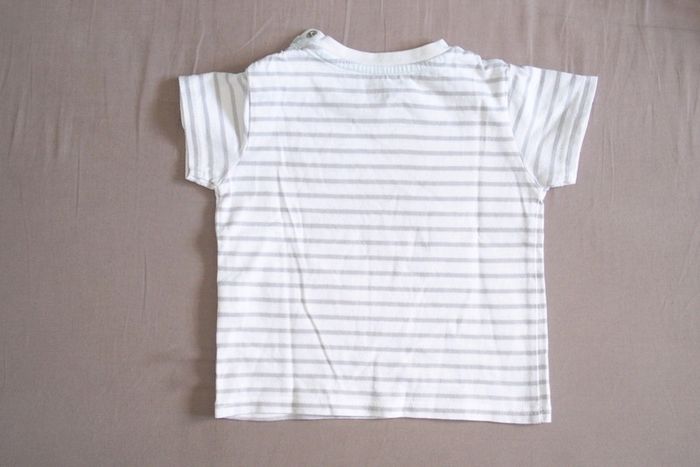 T-shirt blanc et gris claire Taille 6 mois En très bon état #mathilde882g6mois #obaibi6mois