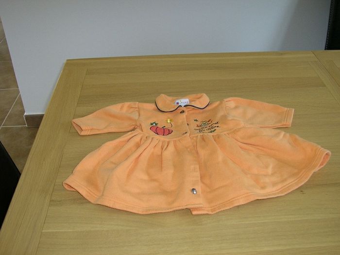 robe en taille 6 mois orange avec broderie peu portée, bon état