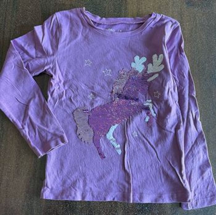 T shirt manches longues sequins réversibles fille 6 ans très bon état.