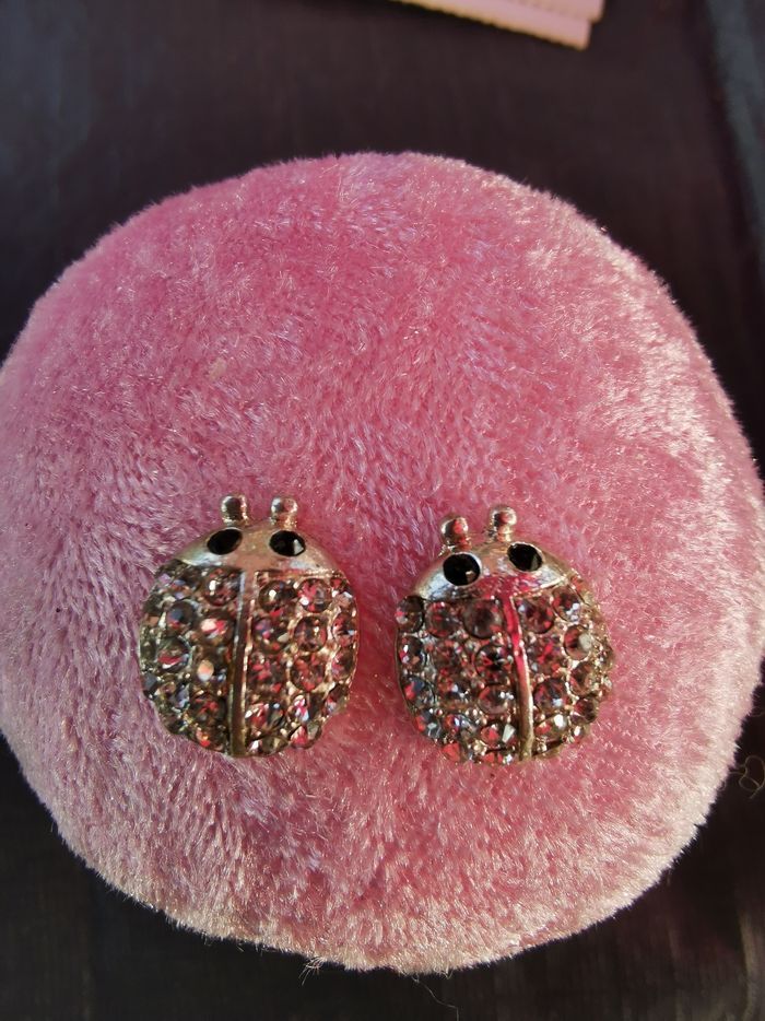 Boucles d'oreilles coccinelles argentées avec des trass blancs et noirs (jamais portées)