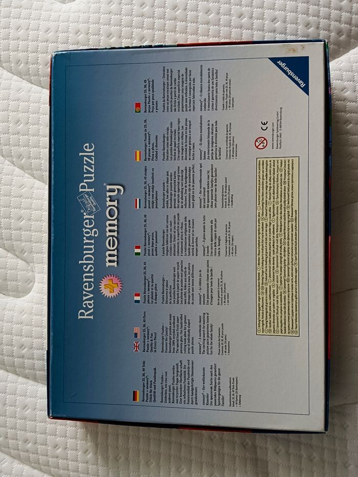 Boîte en bon état, quelques signes d'usure dans les angles. Complet, en très bon état ⚠️ seule une pièce a été rescotchée ( voir photo). Tout est trié. Les pièces des puzzles sont reconnaissables au dos il y a des motifs.