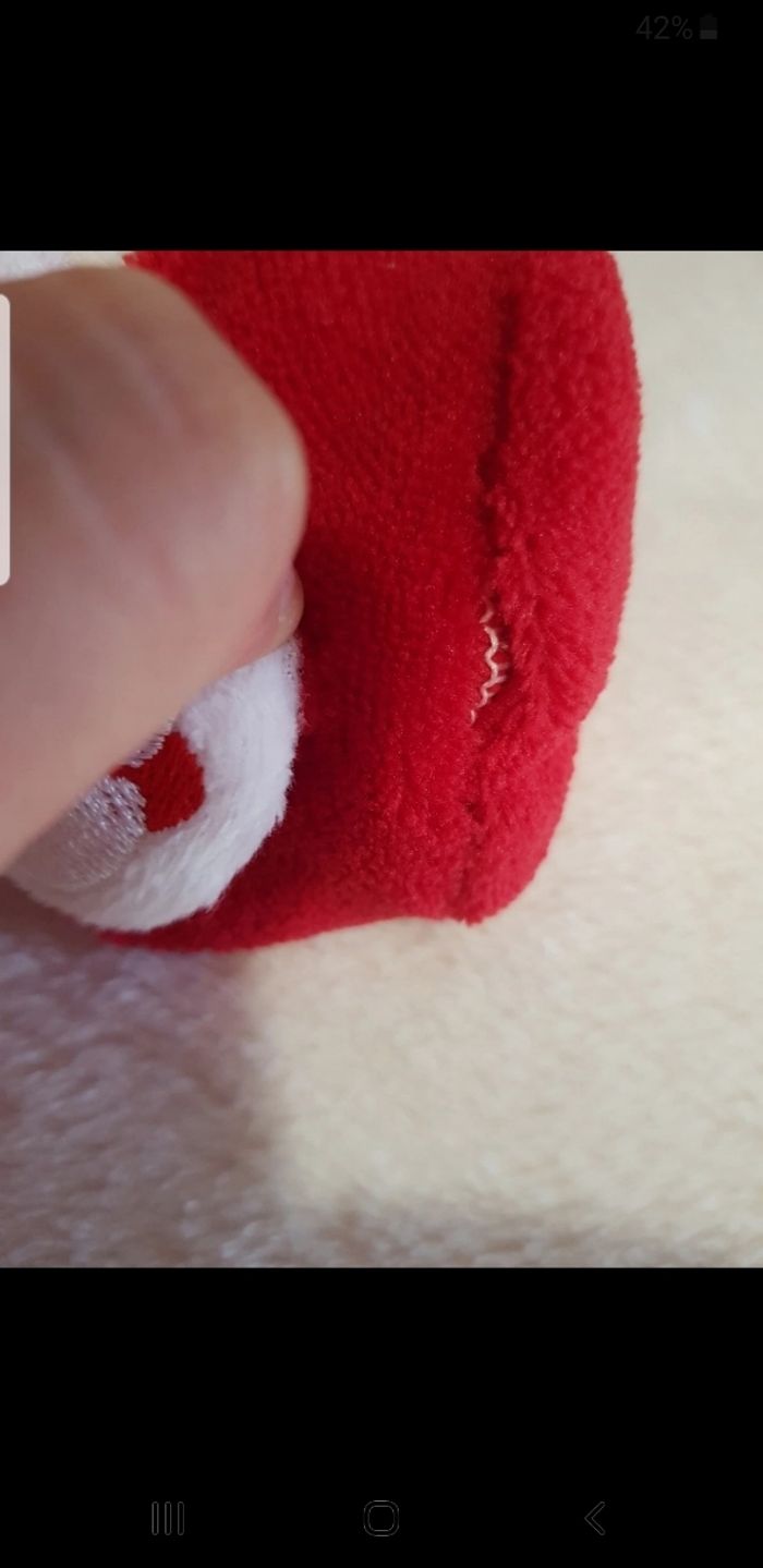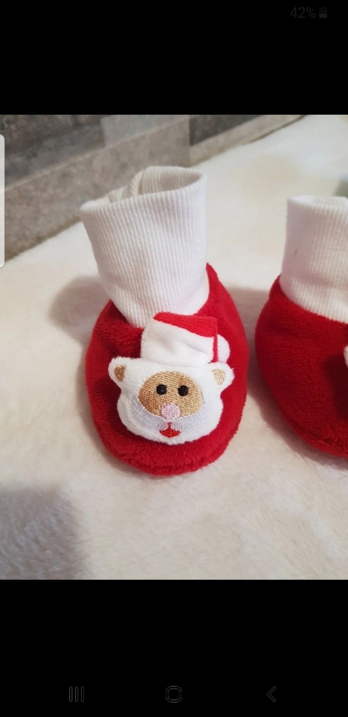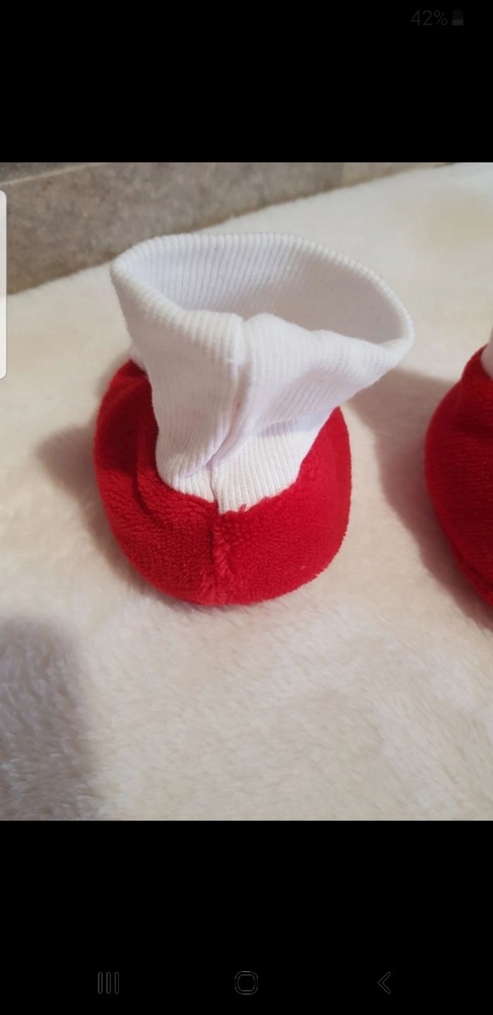 Petites pantoufles de Noël en parfait état. Petit défaut sur une ( on voit la couture devant, voir photo )
