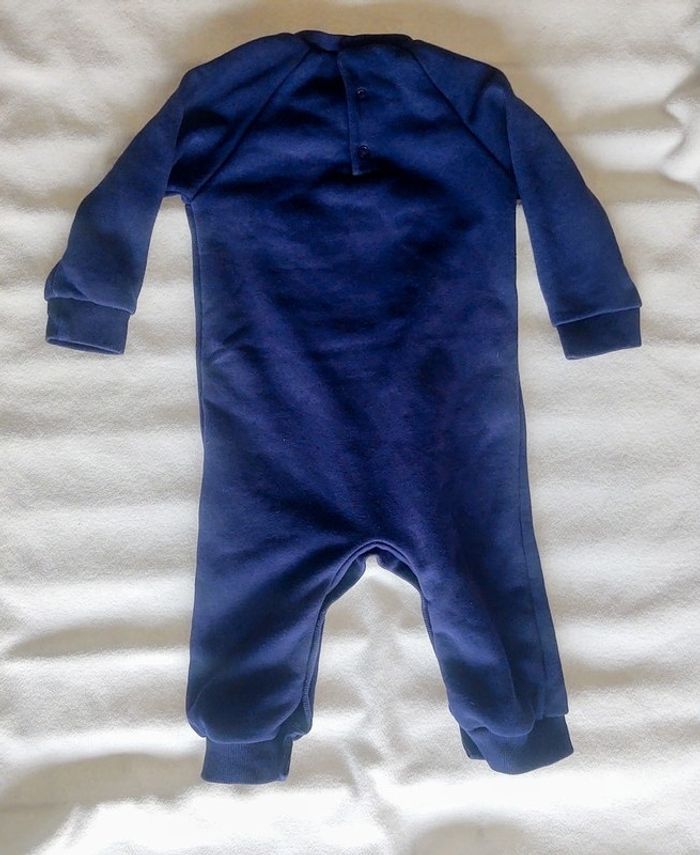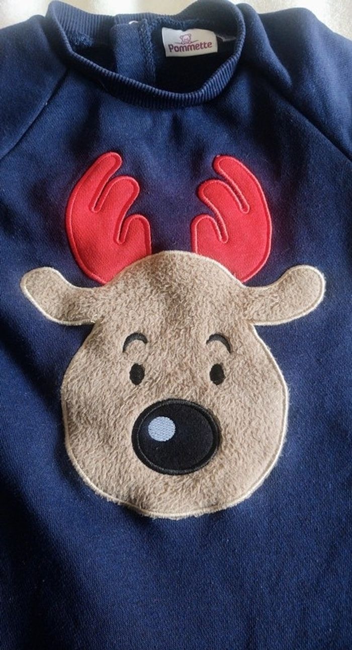 Pyjama bleu marine avec une tête d'élan, de marque Pommette, taille 18 mois. Boutons pressions à l entrejambe et au dos. Très bon état et lavé juste avant la création de l annonce. #vetementbebe #18mois #pyjama #pyjamabebe