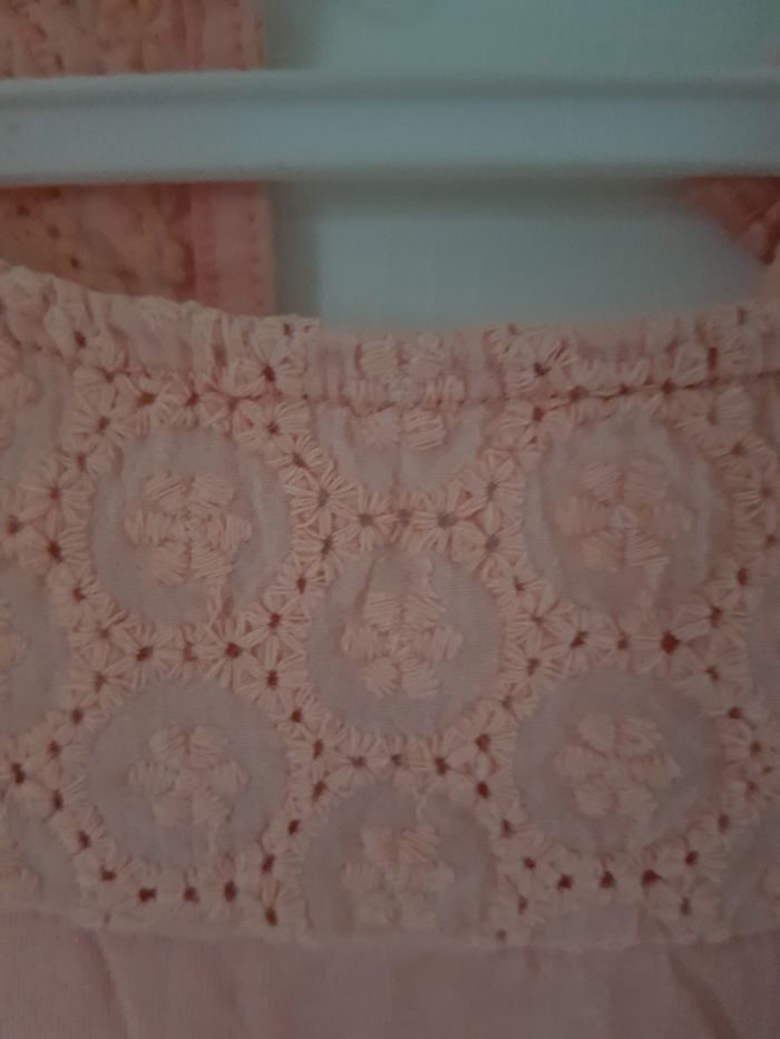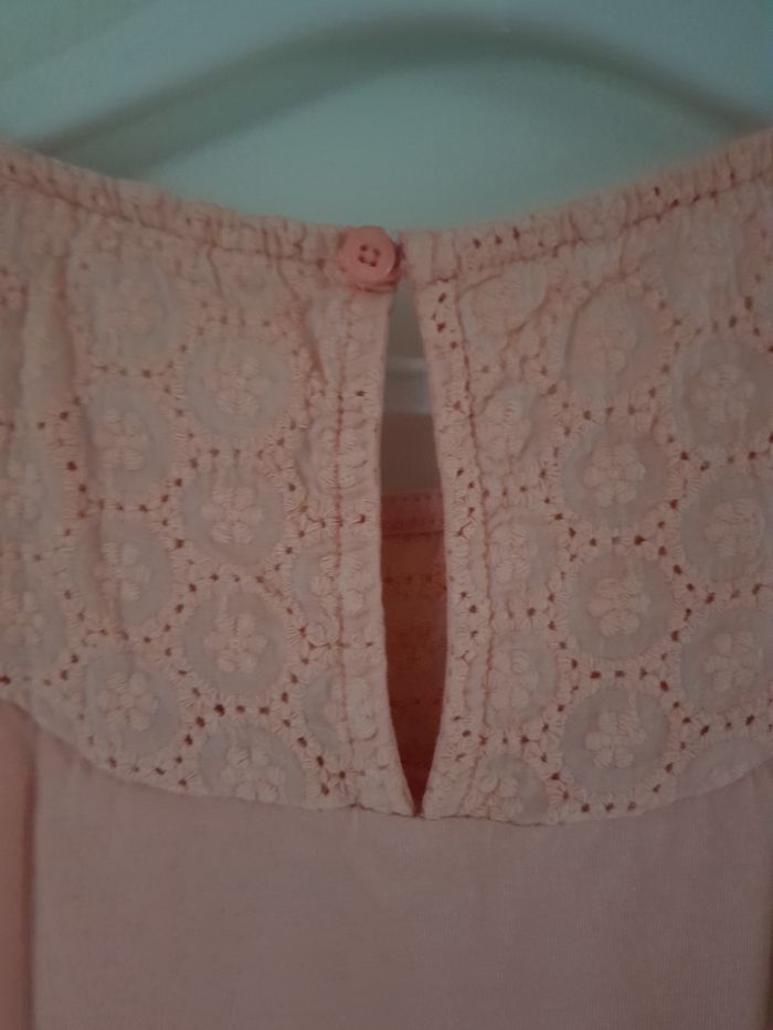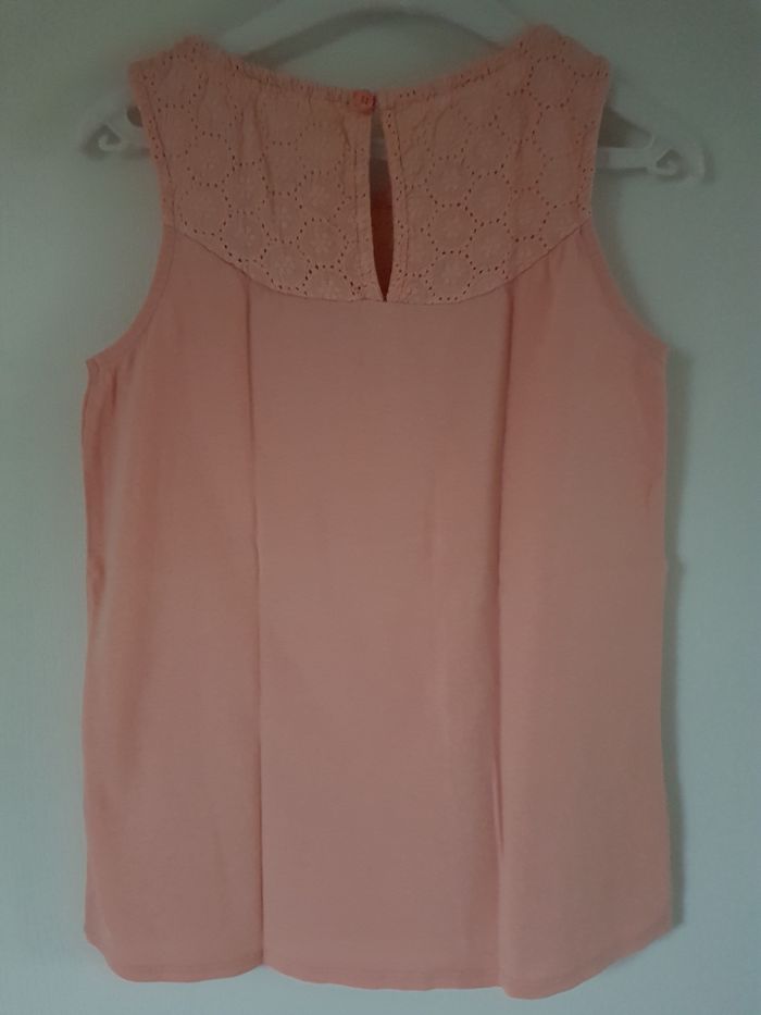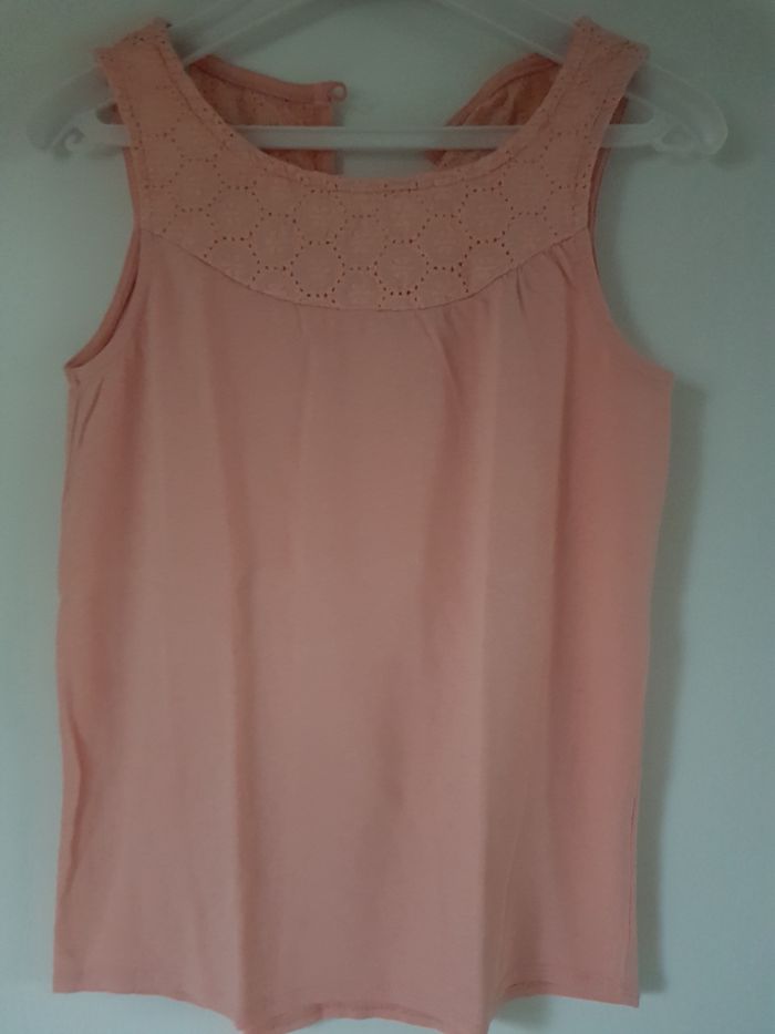 Débardeur rose clair avec broderie sur le haut. En très bon état.