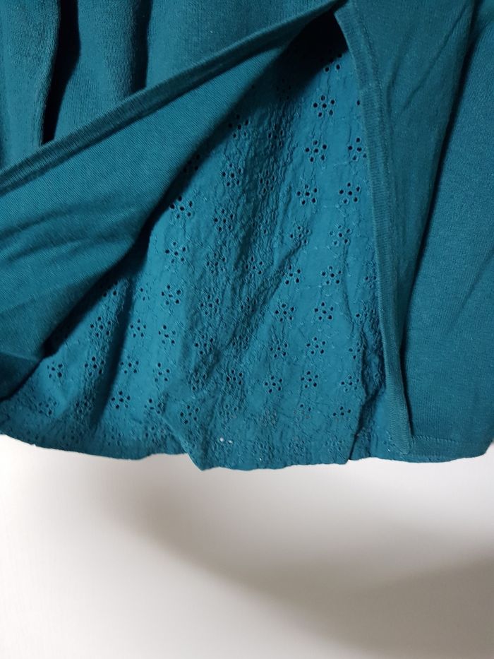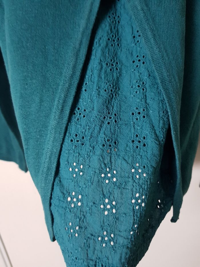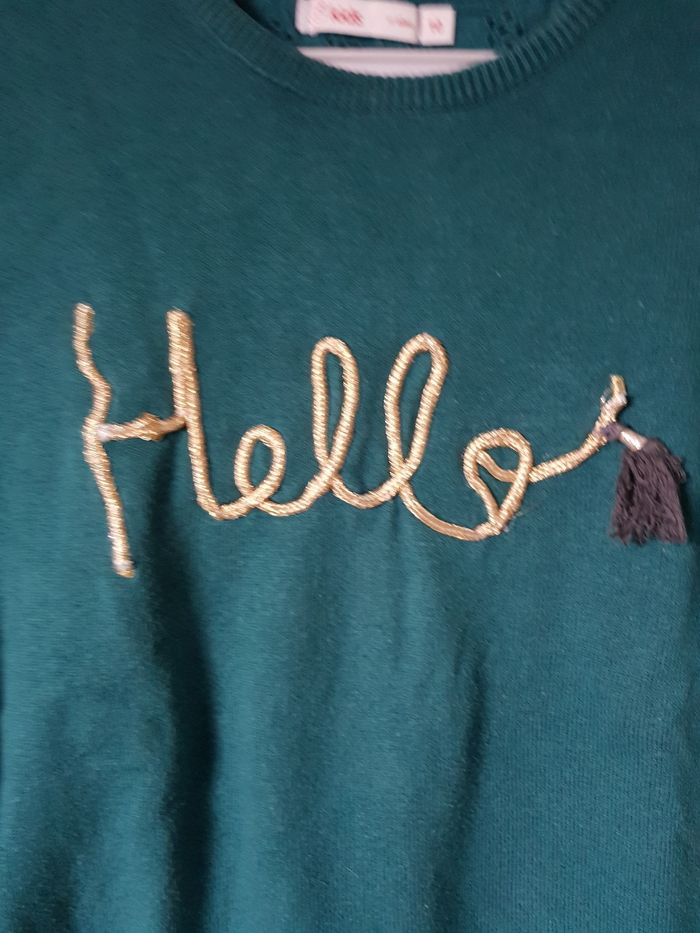 Pull vert, fente au bas du dos avec broderie. En très bon état.