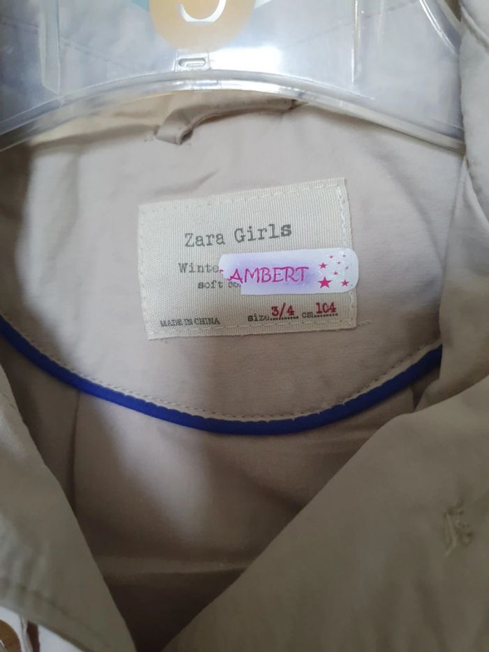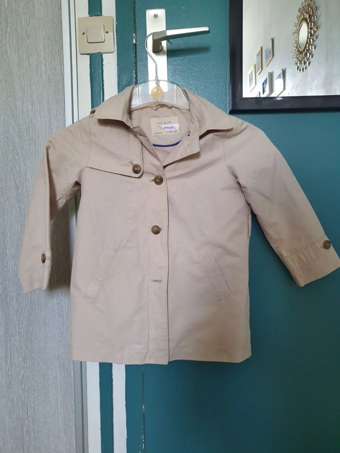 Idéal pour le printemps, veste / trench pour petite fille . Très bon état, mais manque un bouton ( celui du bas) et la ceinture Marque Zara girls , taille 3/4 ans.