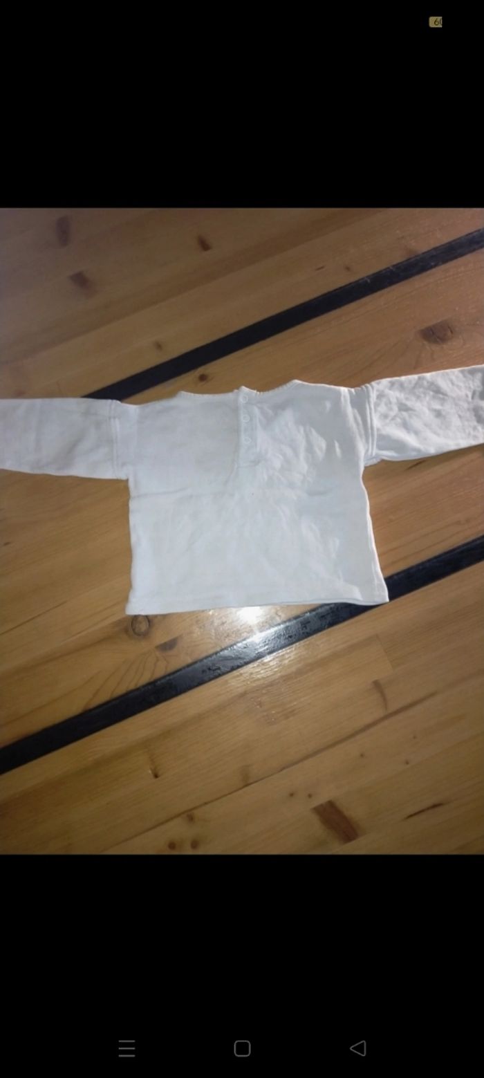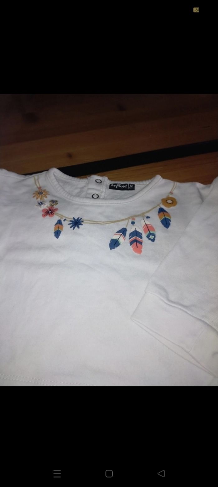 Blanc, motifs indiens fleurs et plumes au col, faux collier. Fermeture par 3 pressions à l'arrière.