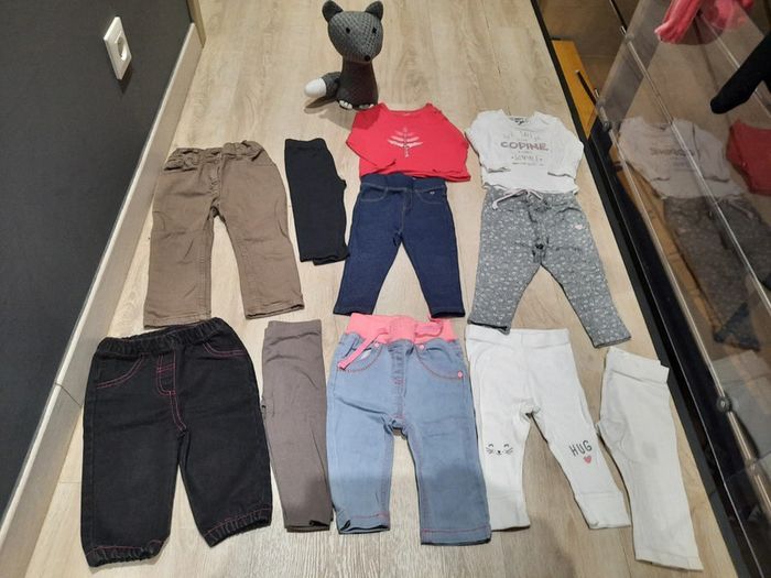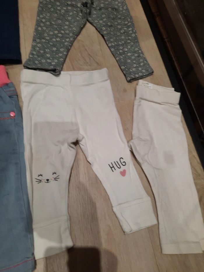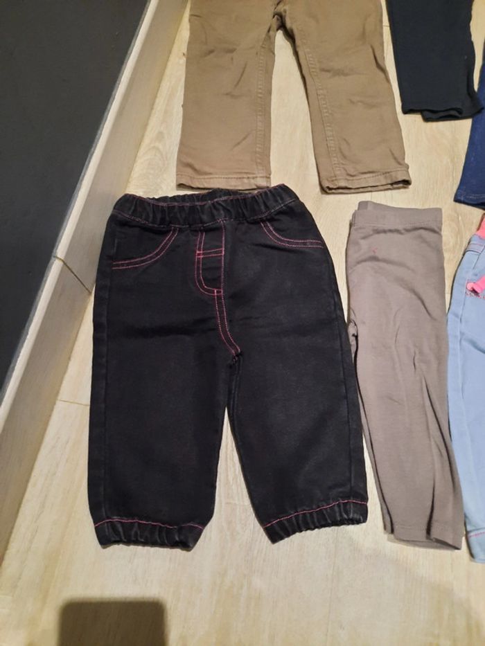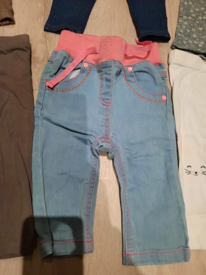 4 pantalons neufs, 3 pantalons tbe et 2 ensembles tbe 1 pantalon benetton 12 mois entre beige et marron neuf jamais porté taille grand passé 1x en machine 1legging chat neuf blanc kiabi neuf passé 1x en machine 1 jean noir couture rose tissaia neuf passé 1x en machine 1 legging taupe neuf jamais porté passé 1x en machine 1 legging beige porté 1x tbe 1 legging noir porté 2 ou 3x tbe kiabi 1 jean clair elastique rose tbe porté 4 ou5x tissaia 1 ensemble gris et blans 3 pommes (pantalon et t shirt manche longue) tbe peu porté 1 ensemble okaidi jean et t shirt à manche longue rouge tbe peu porté Lot depareillable Premiere main, maison non fumeur Je vends egalement des pulls et des t shirts manches longues en 12 mois sur #laul57babyfille12mois Je vends du bébe garçon #laul57babyfille12mois