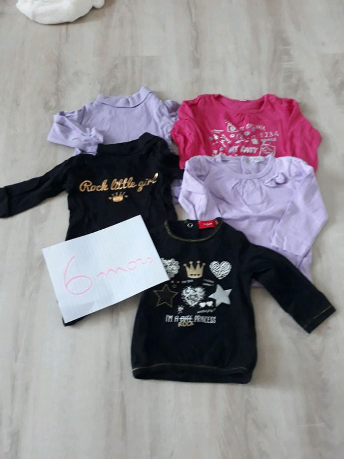 5 t shirts à manches longues neufs 3 marques tissaia Les 2 autres sont sans marque 2 sont à cols roulés (un violet et un noir little rock) #laul57babyfille6mois #laul57bebefille6mois #laul57tshirt6mois