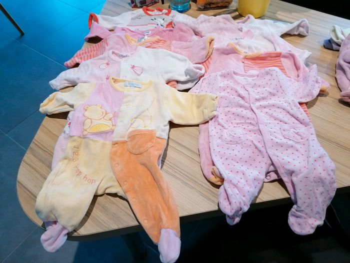 8 pyjamas velours et 1 coton (utile pour le découvrir s'il a de la temperature) marques diverses kitchoun (la plupart), TeX... Si interessée dans mon dressing, je fais le lot 13 bodys et 9 pyjamas pour 20e Je donne un bonnet naissance et je vends également des chaussons de naissance sergent major et moulin roty 15/16 Biensur je peux faire des photos en détail sur demande. #laul57babyfille1mois #laul57bebefille1mois #laul57pyjamas1mois #laul57babyfille #laul57bebefille