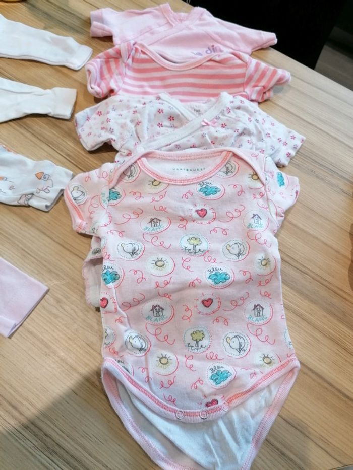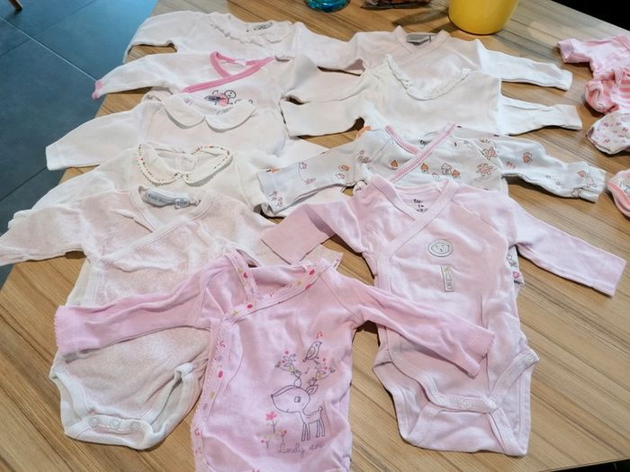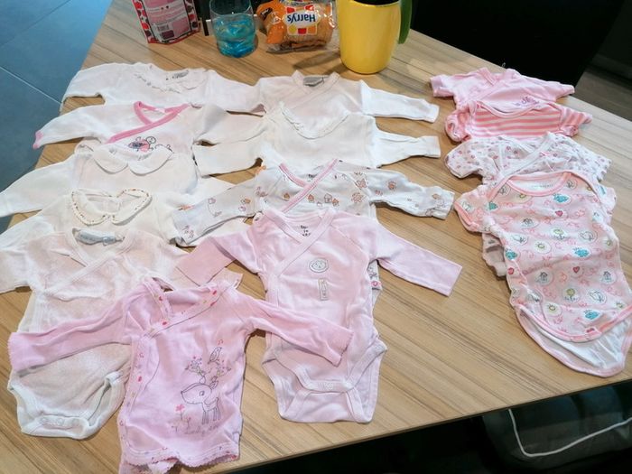 Lot de 9 bodies manches longues taille 1 mois marques diverses kitchoun kiabi TeX verbaudet...