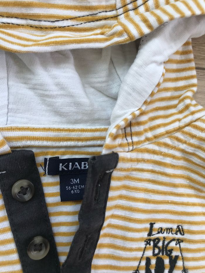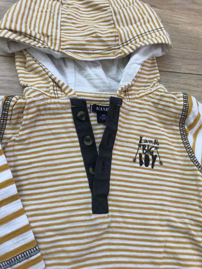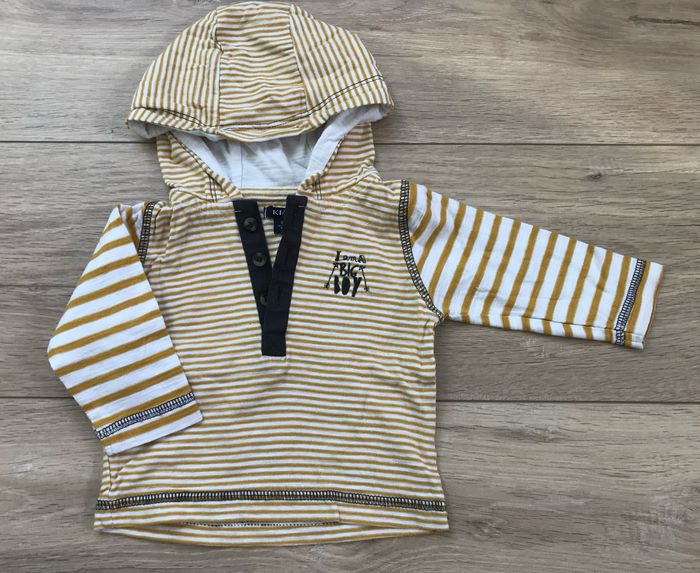 Haut 3M Kiabi à capuche rayures moutarde et blanc « I am a big boy »