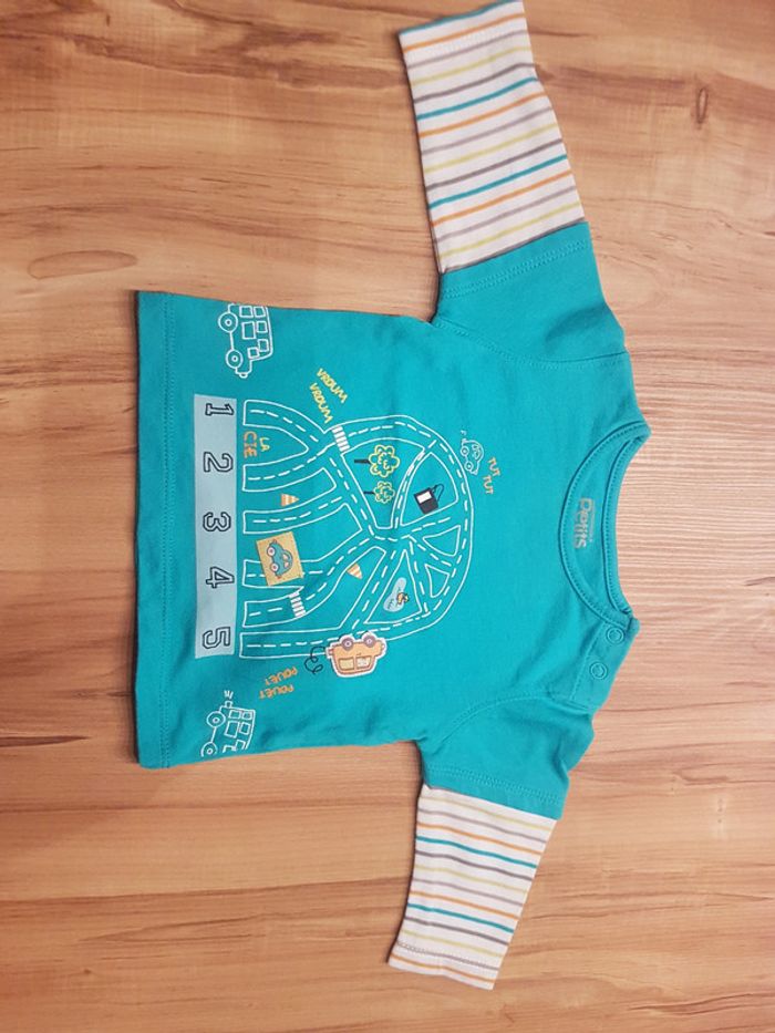 Ensemble salopette jeans bleu# tshirt manches longues turquoise # vert# voiturs3 mois 3pc - photo numéro 3